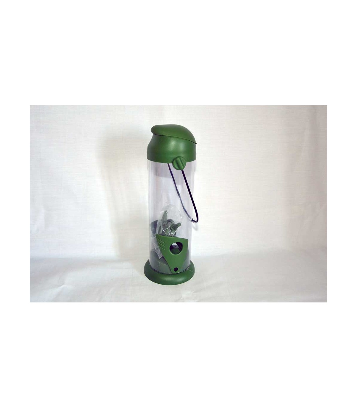 È una mangiatoia in plastica da esterno per uccellini selvatici, dotata di serbatoio trasparente che consente di tenere sotto controllo il livello di semi o mangime inserito all'interno. Può essere appesa in qualunque luogo esterno: giardini, parchi, balconi e terrazzi. È ideale durante la stagione fredda, quando gli uccelli faticano a reperire il cibo.