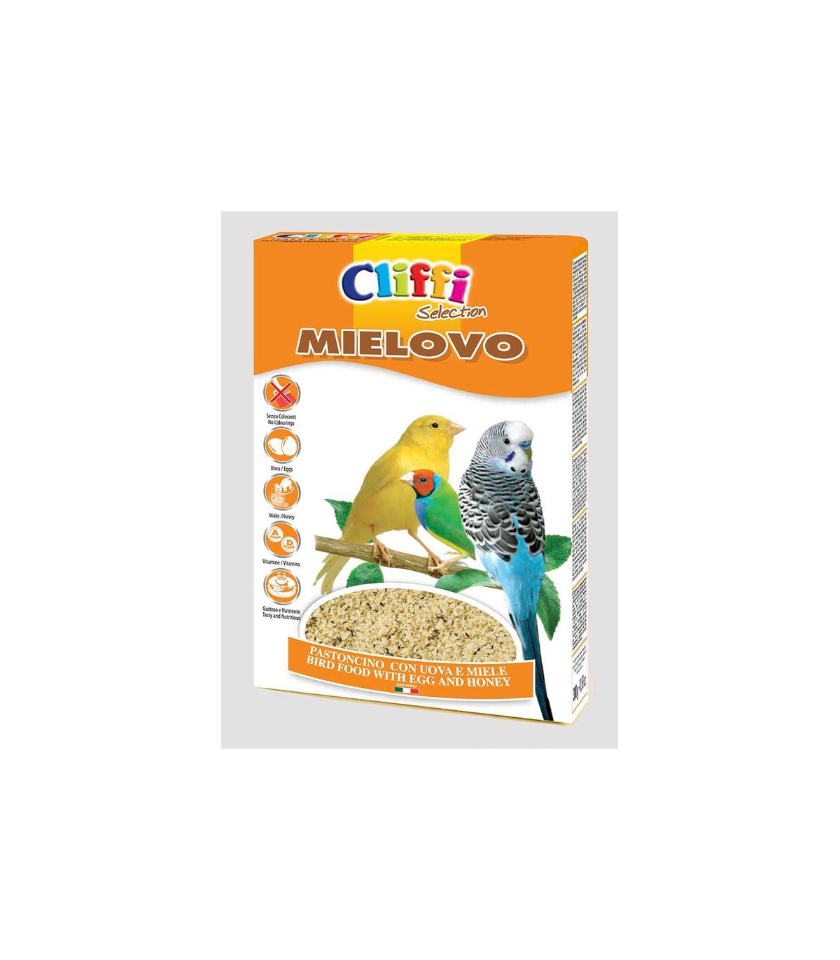 Cliffi mielovo 300 grè un alimento composto per uccelli granivori da compagnia edè un pastoncino con uova e miele, senza coloranti.