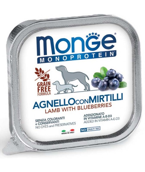 Paté *formulato con un'unica fonte proteica, l'agnello selezionato di altissima qualità, con frutta fonte naturale di vitamine e minerali.