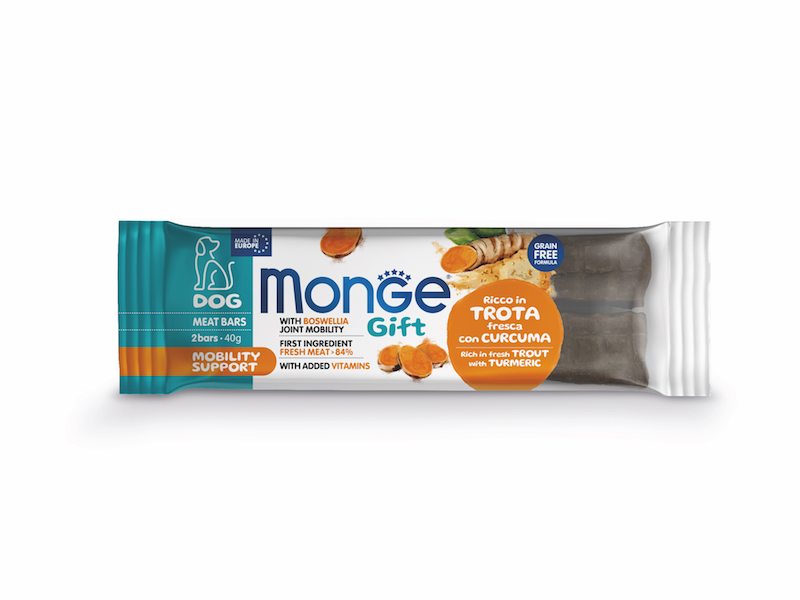 Monge Gift Barrette Mobility Support Trota Curcuma 40 gr Snack Per Cani