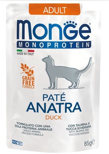 Monge Monoproteico Grain Free Patè Adult Anatra 85 gr Bustina Per Gatti