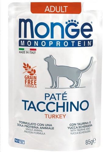Monge Monoproteico Grain Free Patè Adult Tacchino 85 gr Bustina Per Gatti