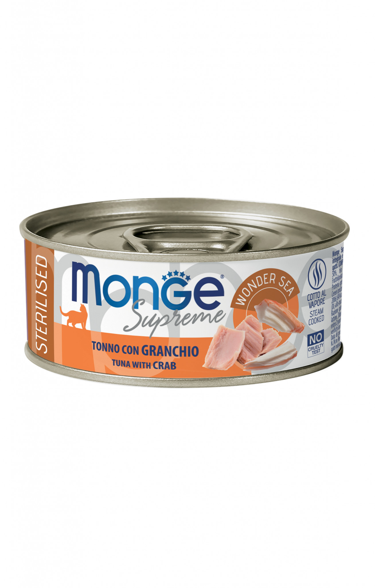 Monge Supreme Sterilised Tonno Granchio 80 gr Scatoletta Gatticonfezione da 12 pz. € 1.25 cad. prezzo unitario