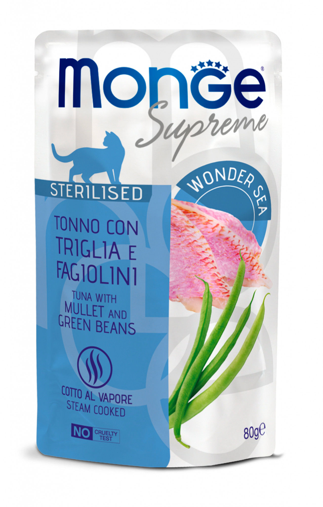 Monge Supreme Sterilised Tonno Triglia Fagiolini 80 gr Bustina Gatticonfezione da 12 pz. € 1.15 cad. prezzo unitario