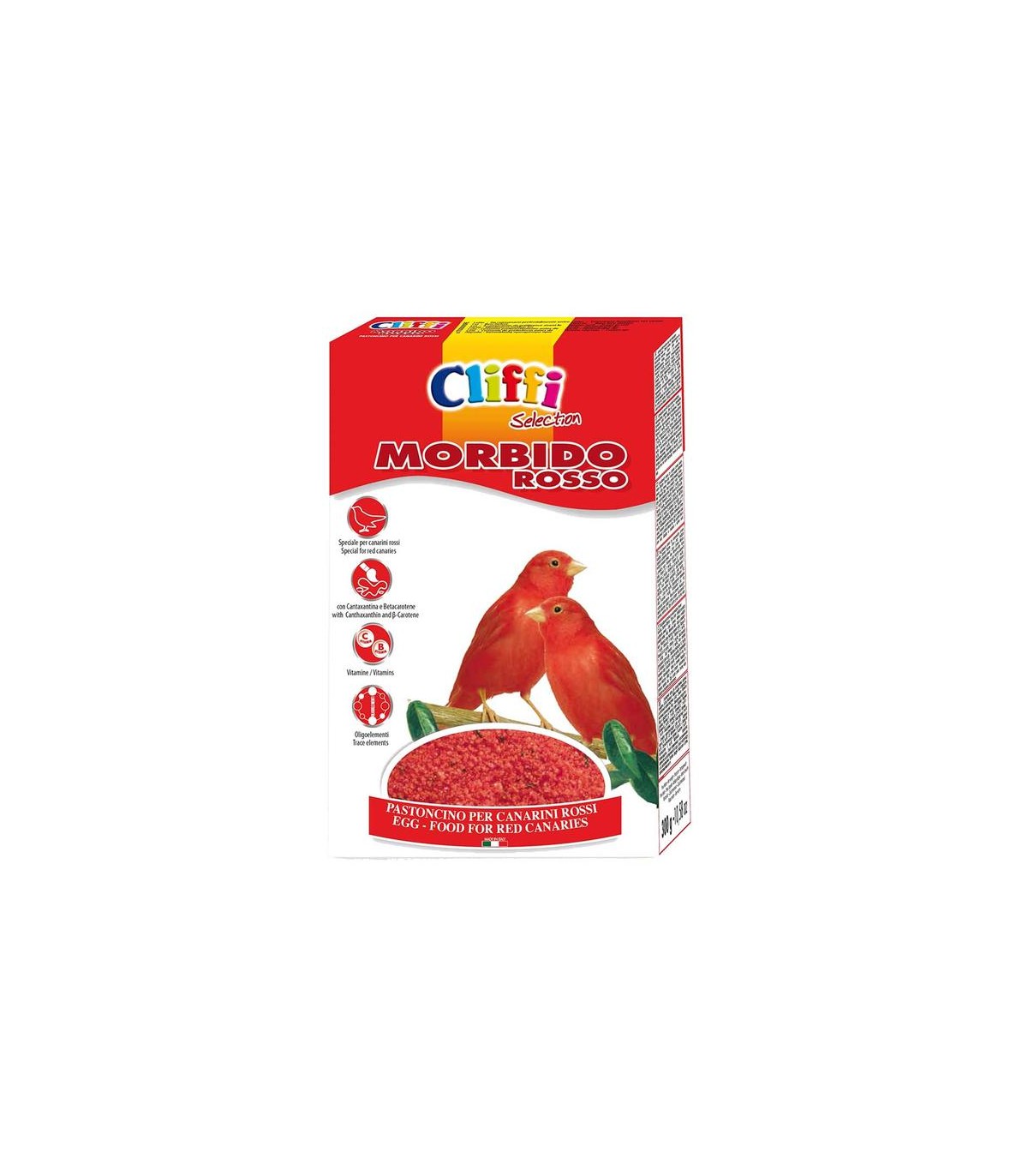 CARATTERISTICHE: MORBIDO ROSSO è un alimento dotato di notevole appetibilità e composto esclusivamente di ingredienti di primissima qualità. Contiene sostanze che servono per ravvivare e mantenere il colore rosso dei canarini.