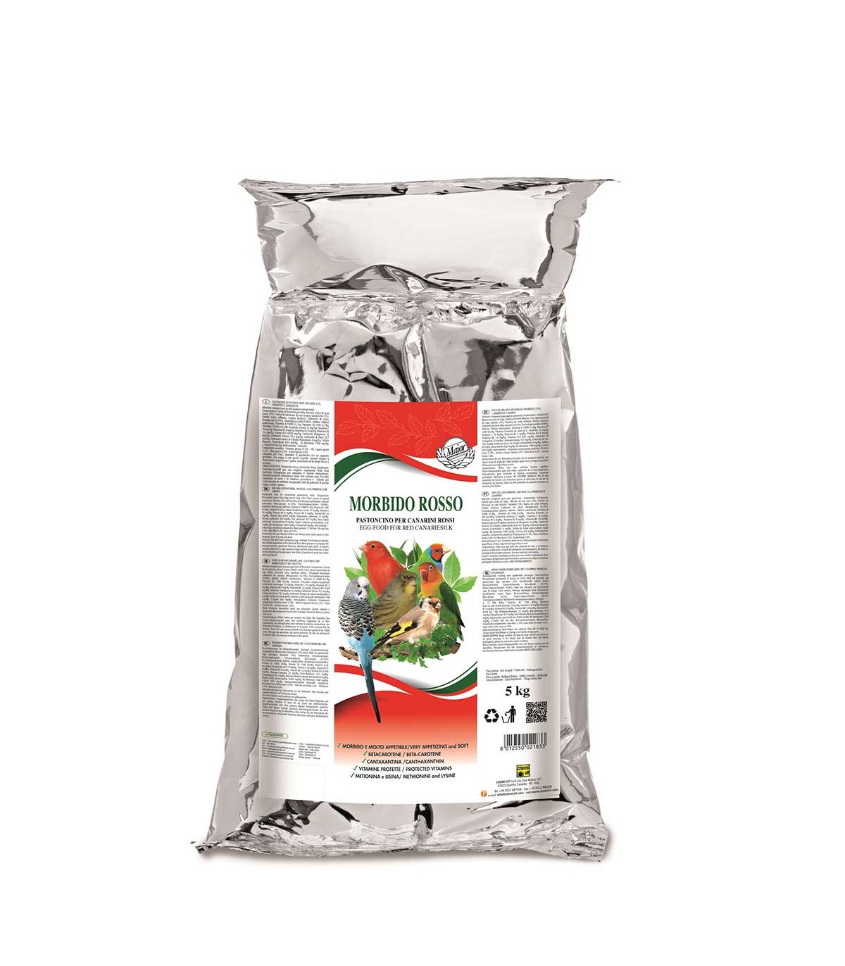 CARATTERISTICHE: MORBIDO ROSSO è un alimento dotato di notevole appetibilità e composto esclusivamente di ingredienti di primissima qualità. Contiene sostanze che servono per ravvivare e mantenere il colore rosso dei canarini.
