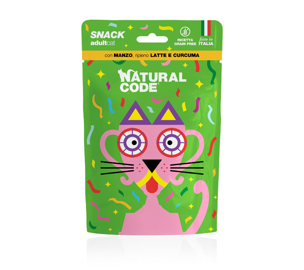 Natural Code Snack Cat Adult Grain Free Manzo Latte Curcuma 60 gr