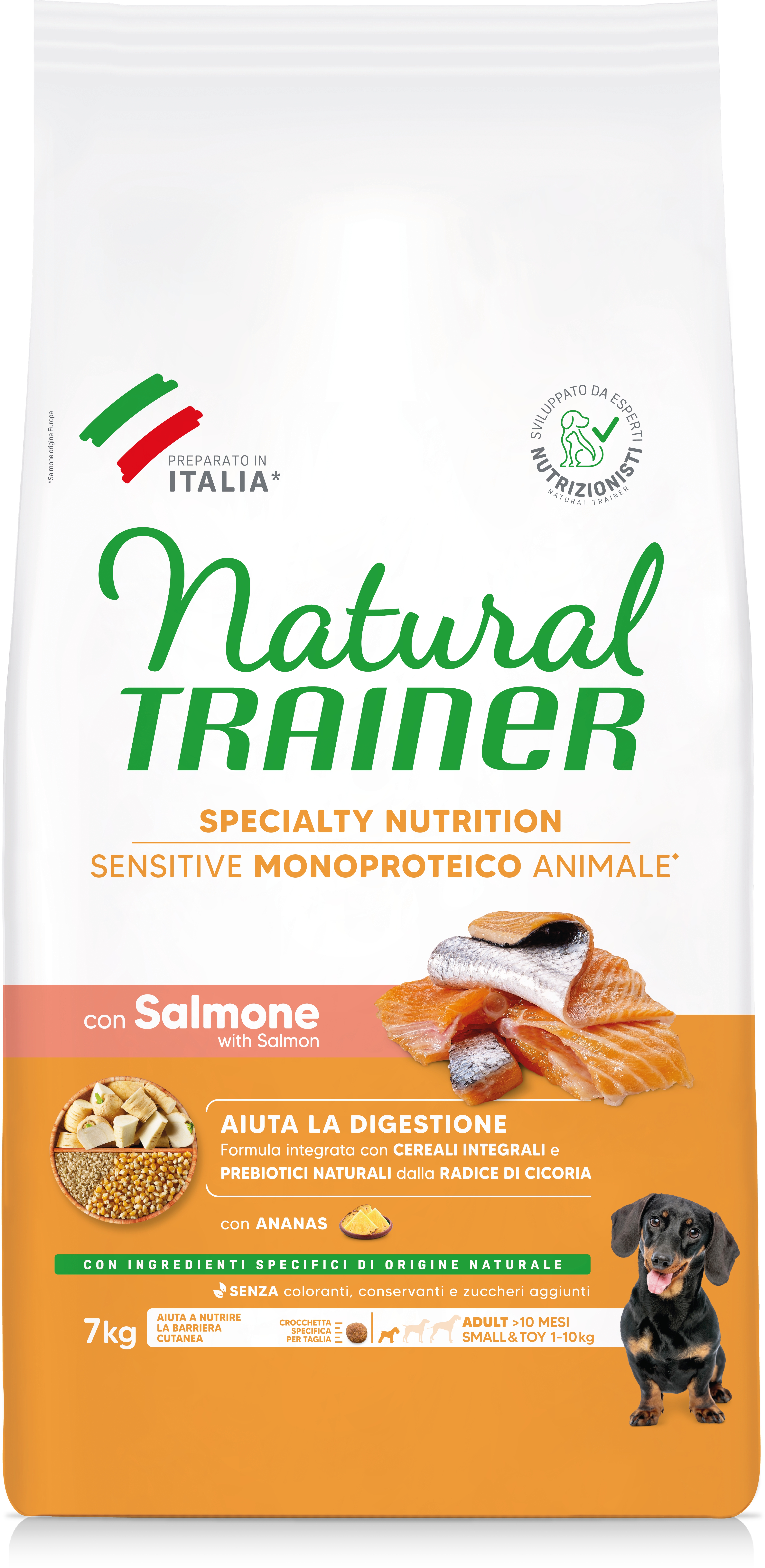 Natural Trainer Sensitive Monoproteico Mini Adult Salmone 7 kg Per Cani