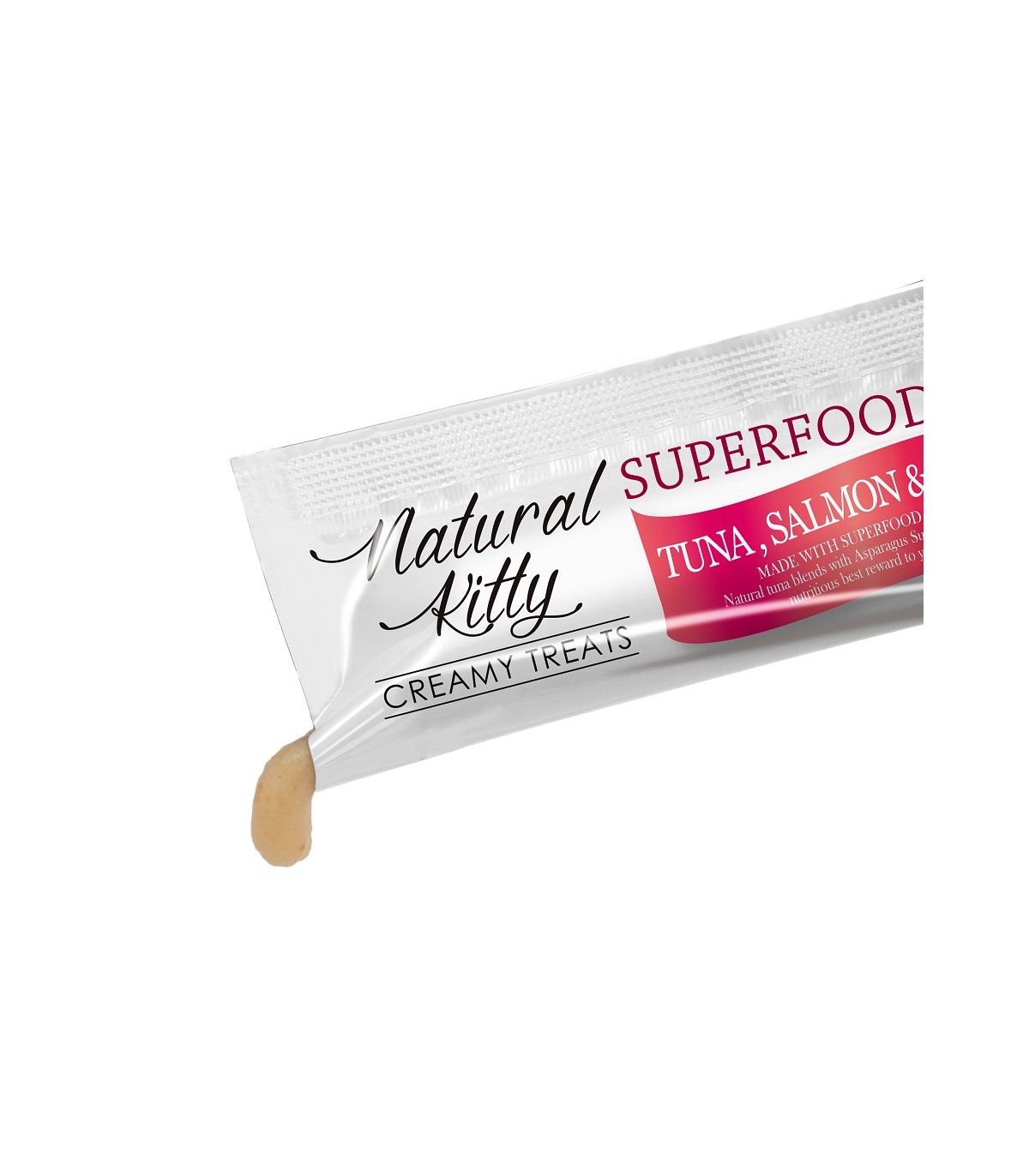 Composizione: carne di tonno 21,00%, fiocchi di patate 4,00%, esaltatore 3,00%, estratto di tonno 1,00%, carne di salmone 1,00%, mirtillo rosso 1,00%, oligosaccaridi 0,10%.
