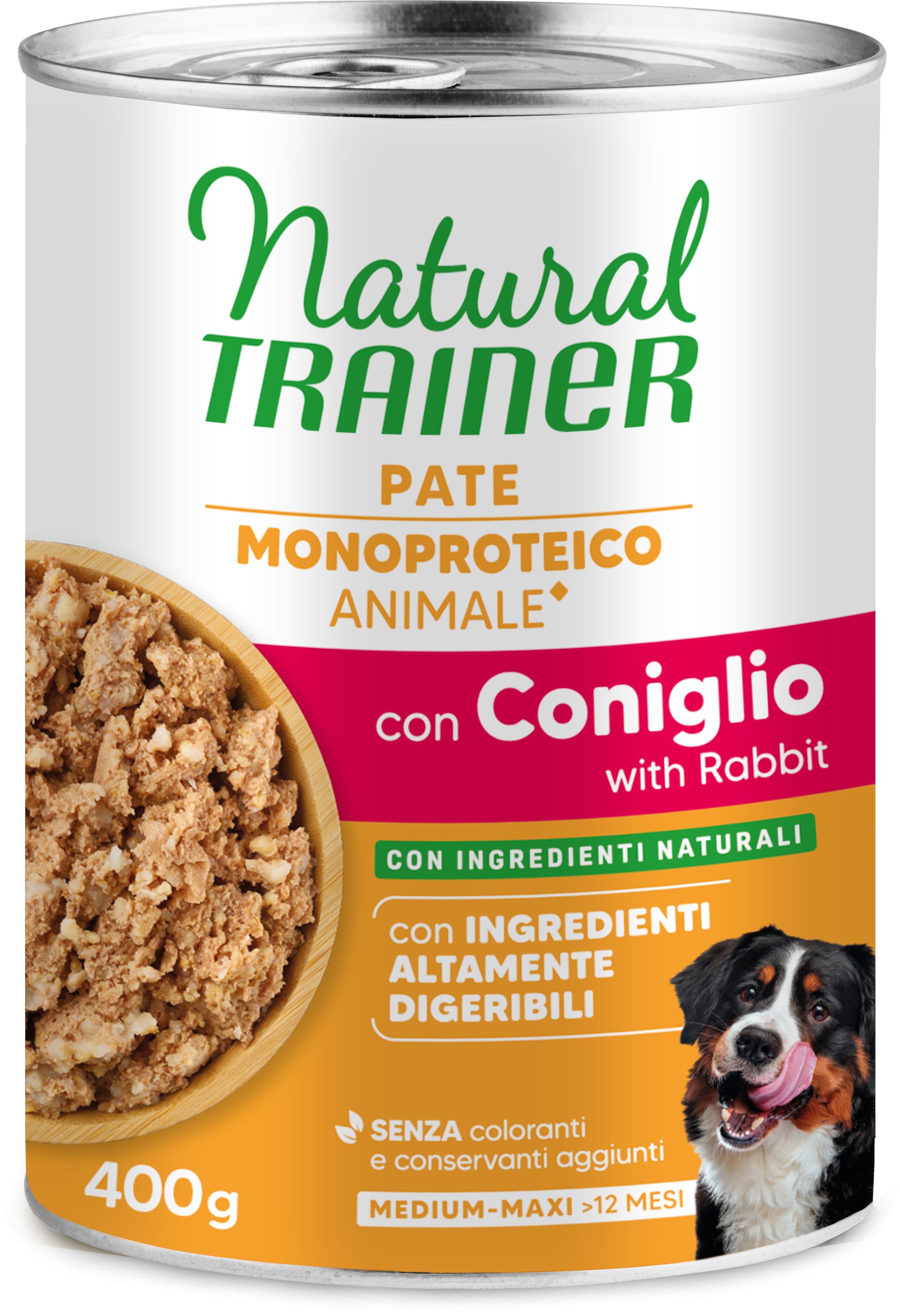 Coniglio 25% , riso 7% , olio di girasole 2% , proteina di riso, sostanze minerali, farina di riso fermentato, estratto secco di radice di cicoria (fonte di inulina)* 0,15% , estratto secco di gambo dananas* 0,1% , estratto secco di foglie di ulivo* 0,05% .