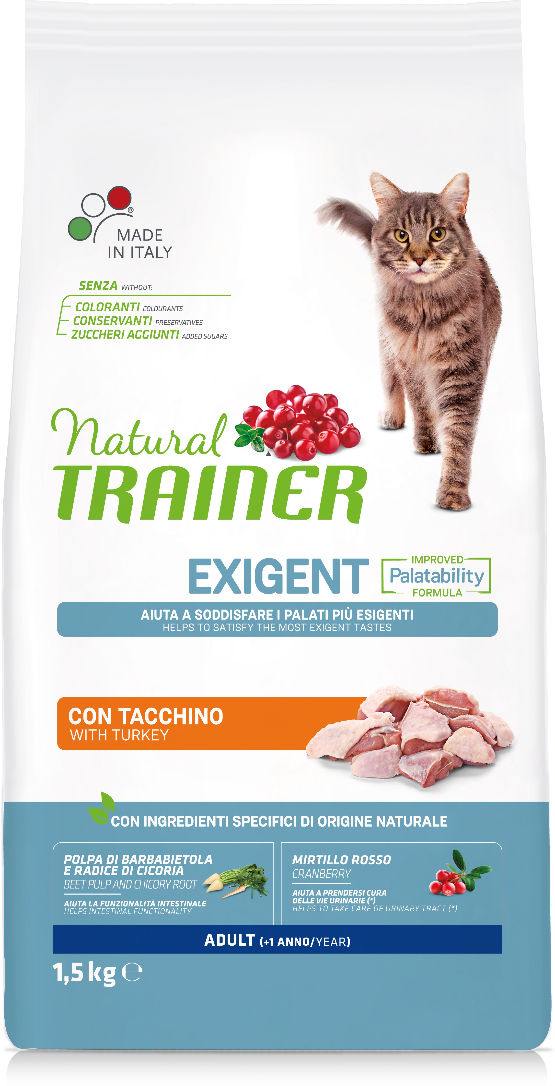 Alimento secco bilanciato per gatti adulti Trainer Natural Hairball con Pollo e mix di fibre, composizione specifica anti boli di pelo, con acidi grassi Omega 3 e 6, zinco e prebiotici naturali.
