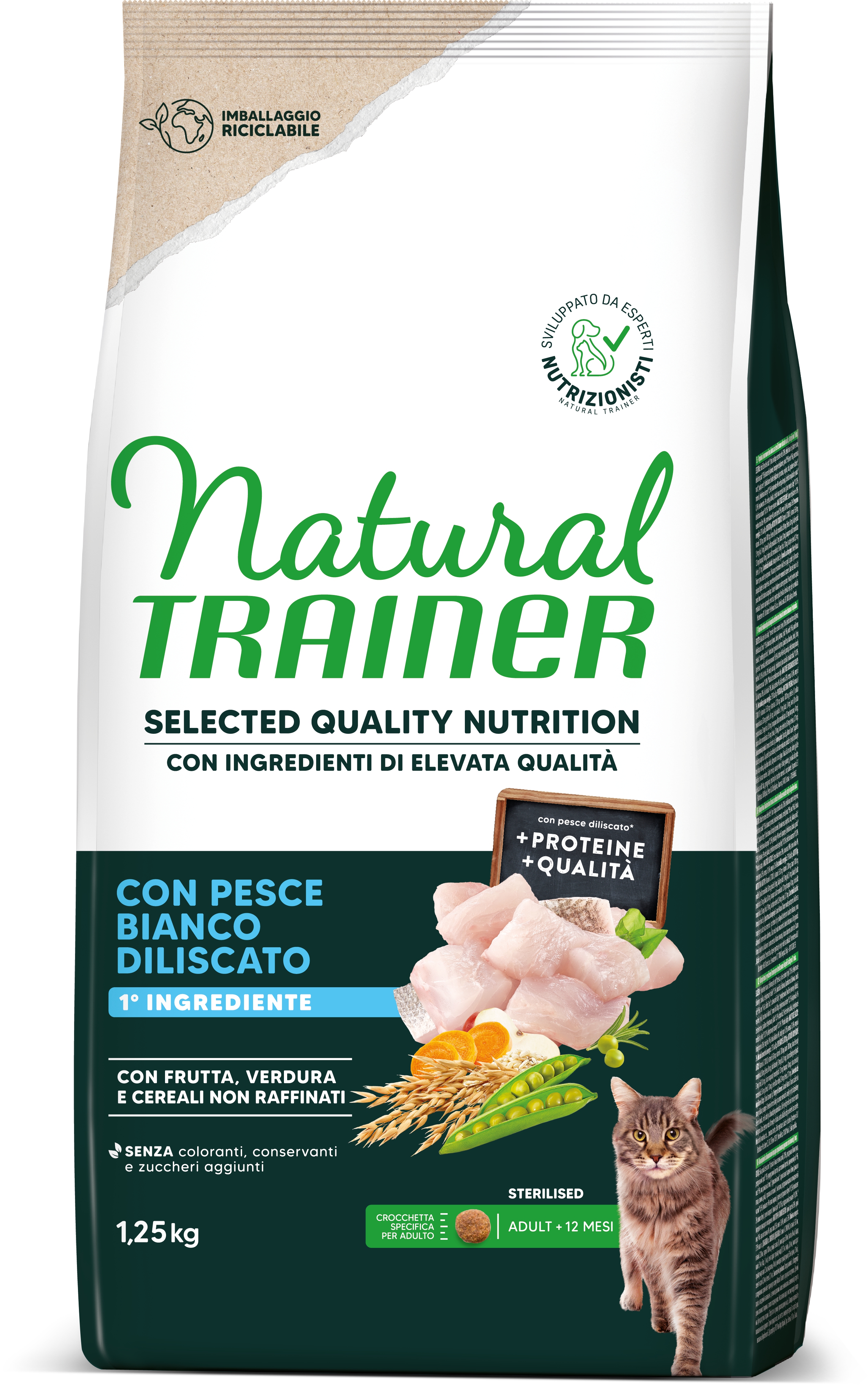 Natural Trainer Selected Quality Nutrition Gatto Healthy Grain Sterilised Pesce Bianco 1,25kg