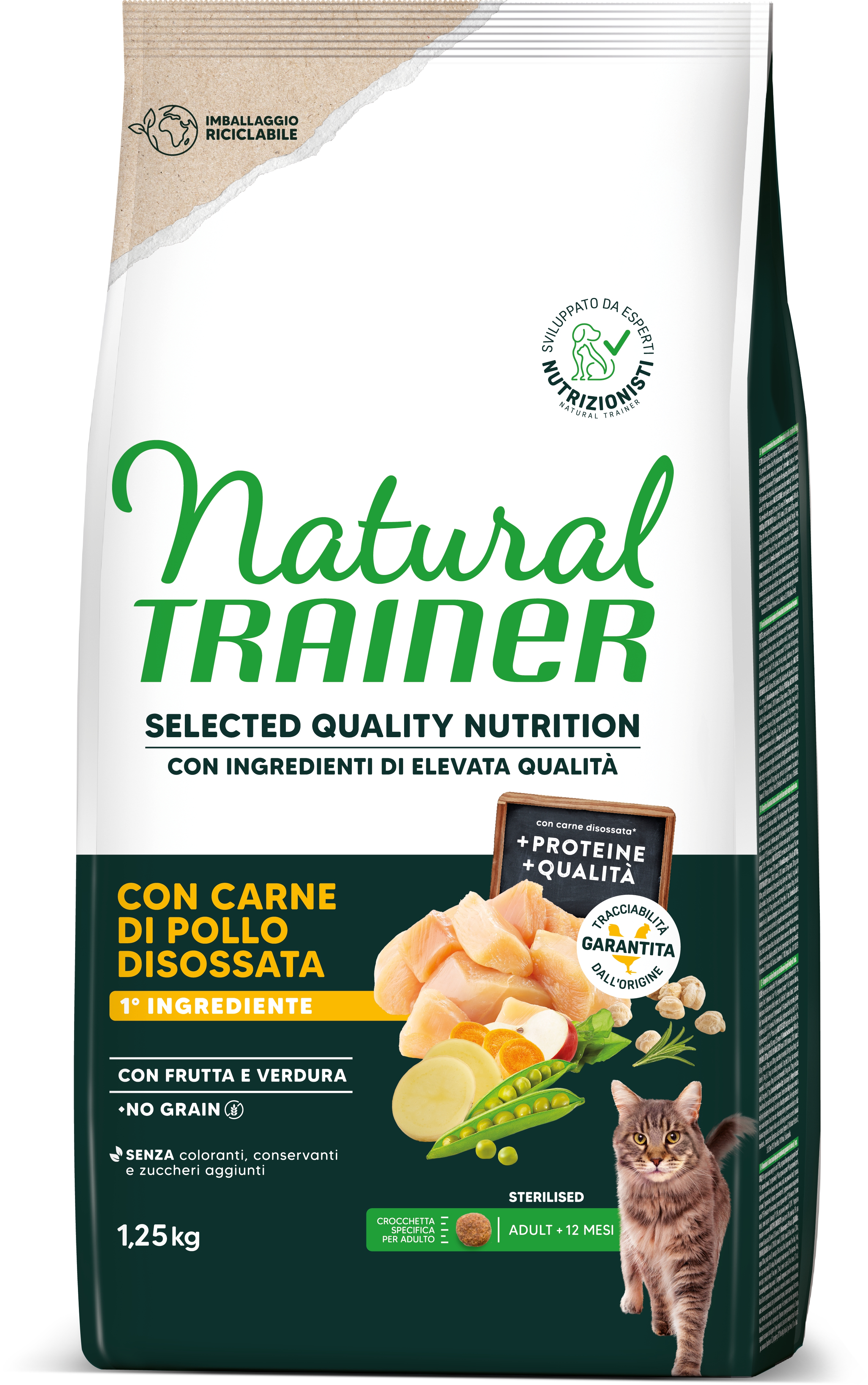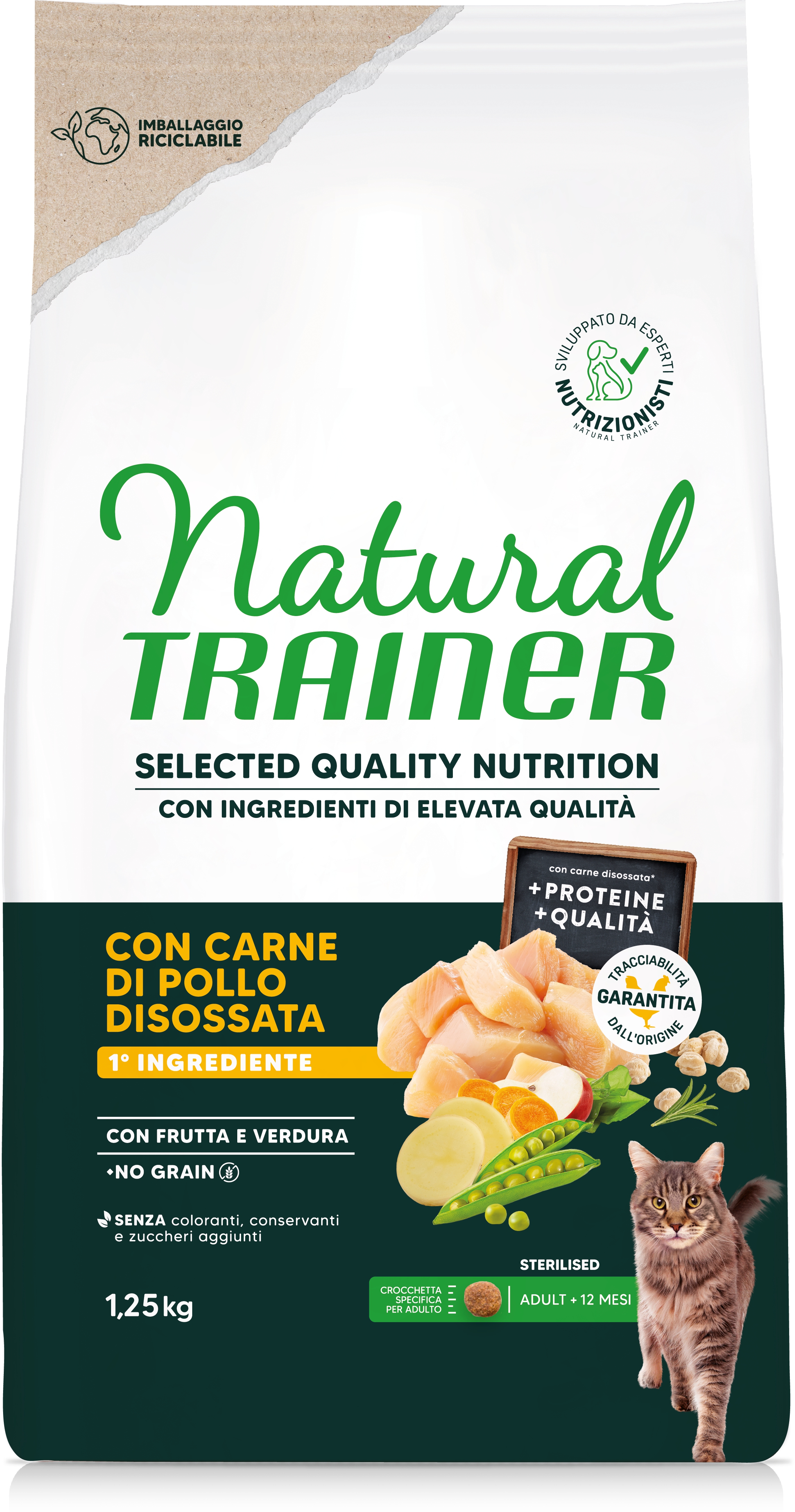 • Natural Trainer Selected Quality Nutrition Gatto No Grain Sterilised Pollo 1,25kg in Gatti