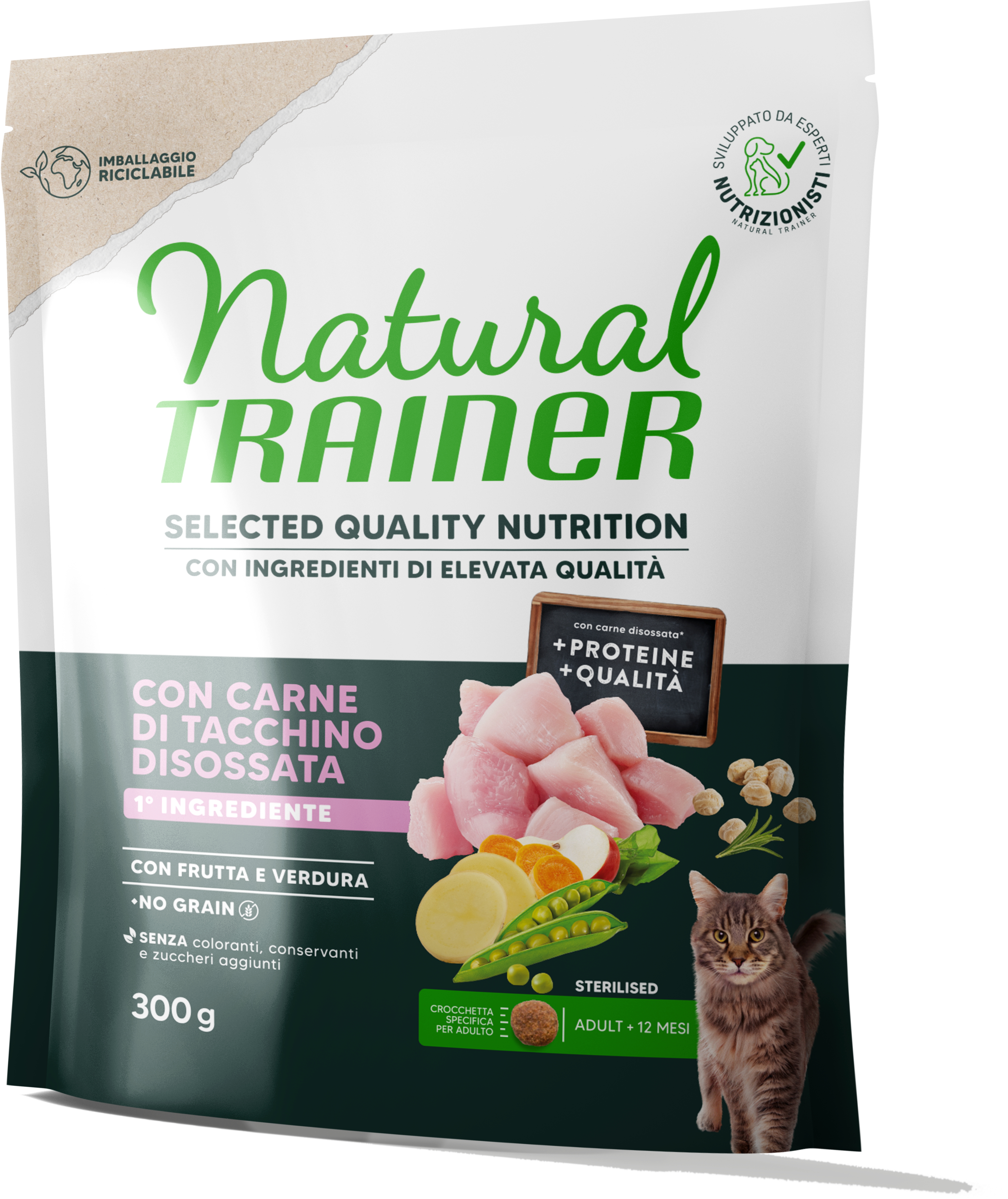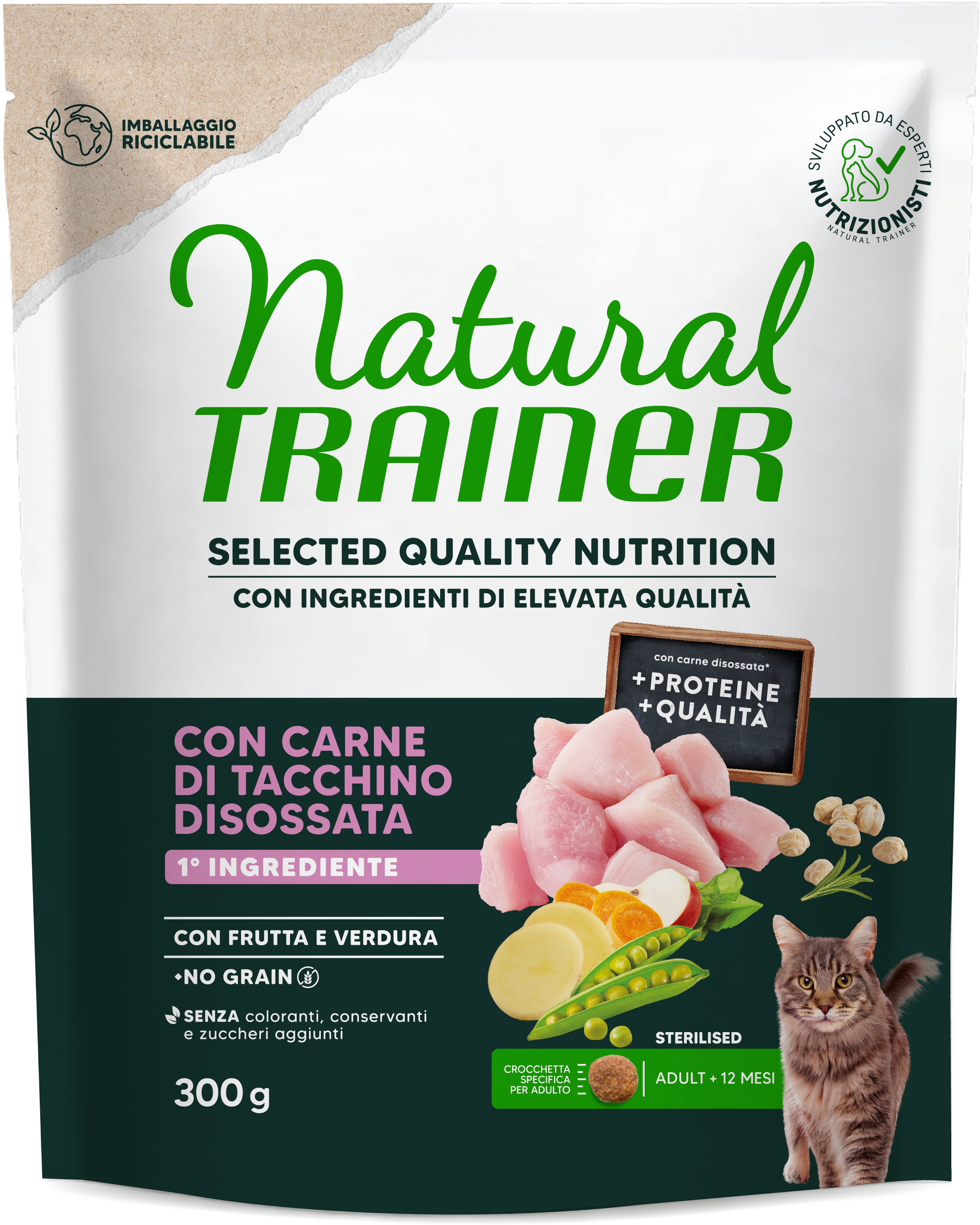Natural Trainer Selected Quality Nutrition Gatto No Grain Sterilised Tacchino 300g