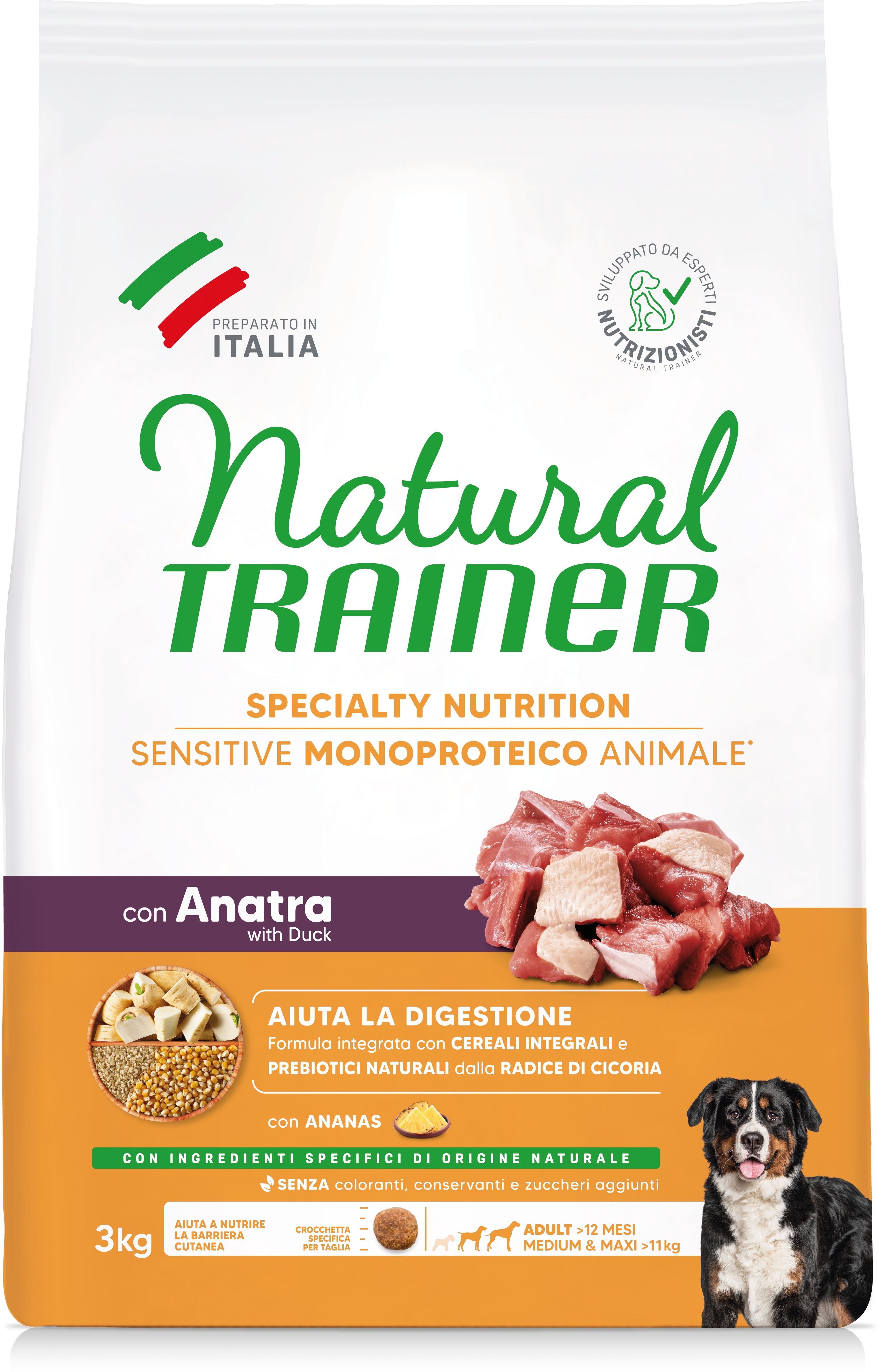 Natural Trainer Sensitive Monoproteico Adult Medium Maxi Anatra Cereali Integrali 3 kg