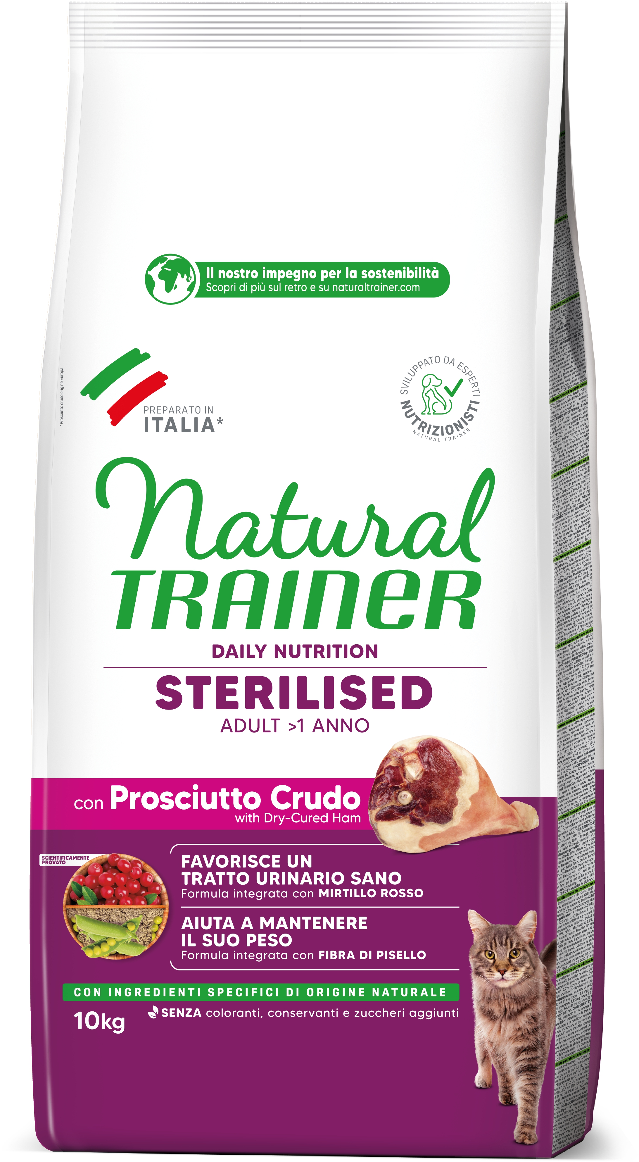 • Natural Trainer Sterilised Prosciutto Crudo 10 kg Gatto in Gatti