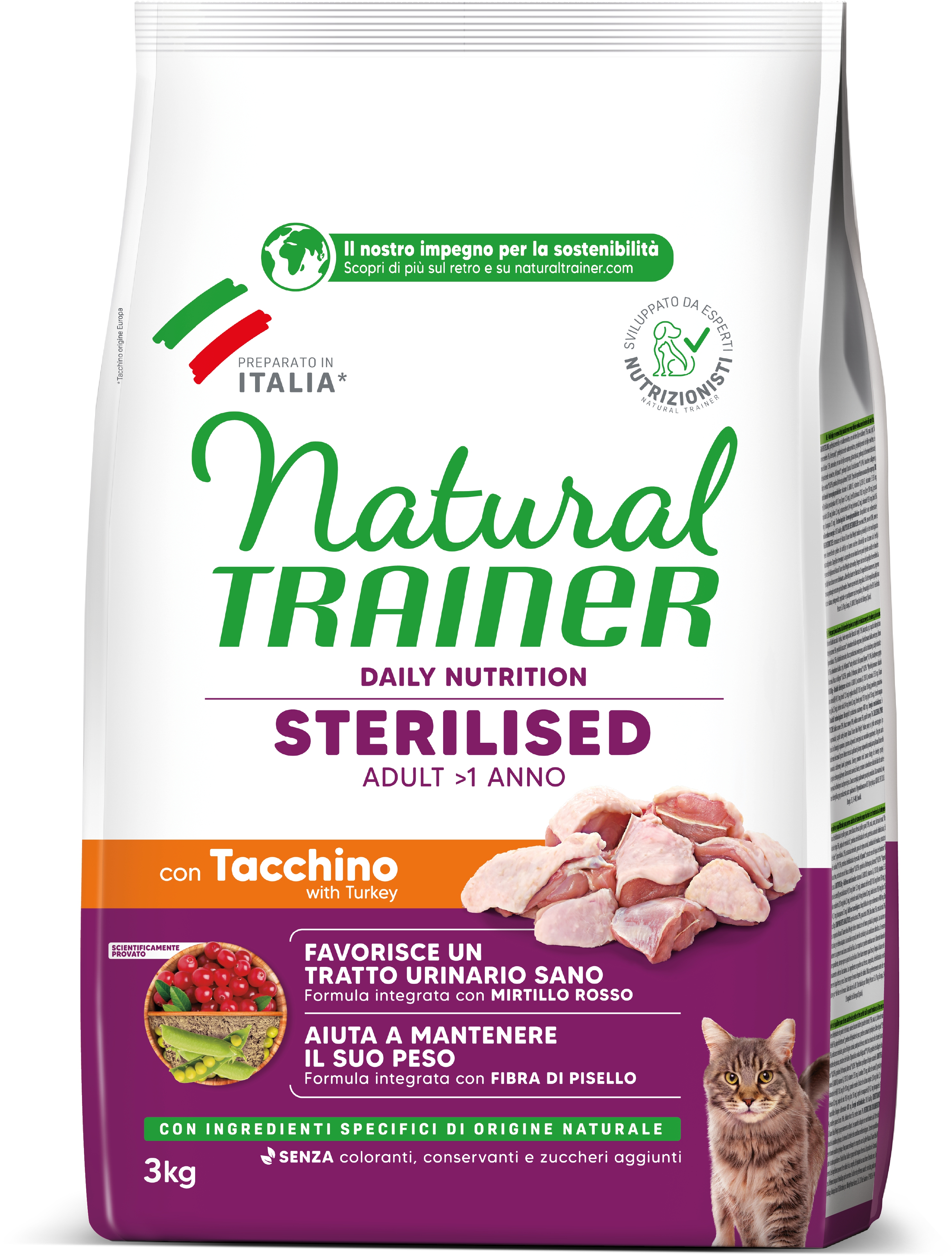 Recensioni per Natural Trainer Sterilised Carni Bianche 3 kg Gatto