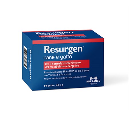 Resurgen in gocce è un mangime complementare per cani e gatti contenente EPA, DHA, CLA, beta-Carotene e Vitamina E. L'azione dei principi attivi permette, soprattutto nei soggetti anziani debilitati, di ridurre le citochine pro-infiammatorie, di favorire la risposta immunitaria e di contrastare la perdita di massa magra.