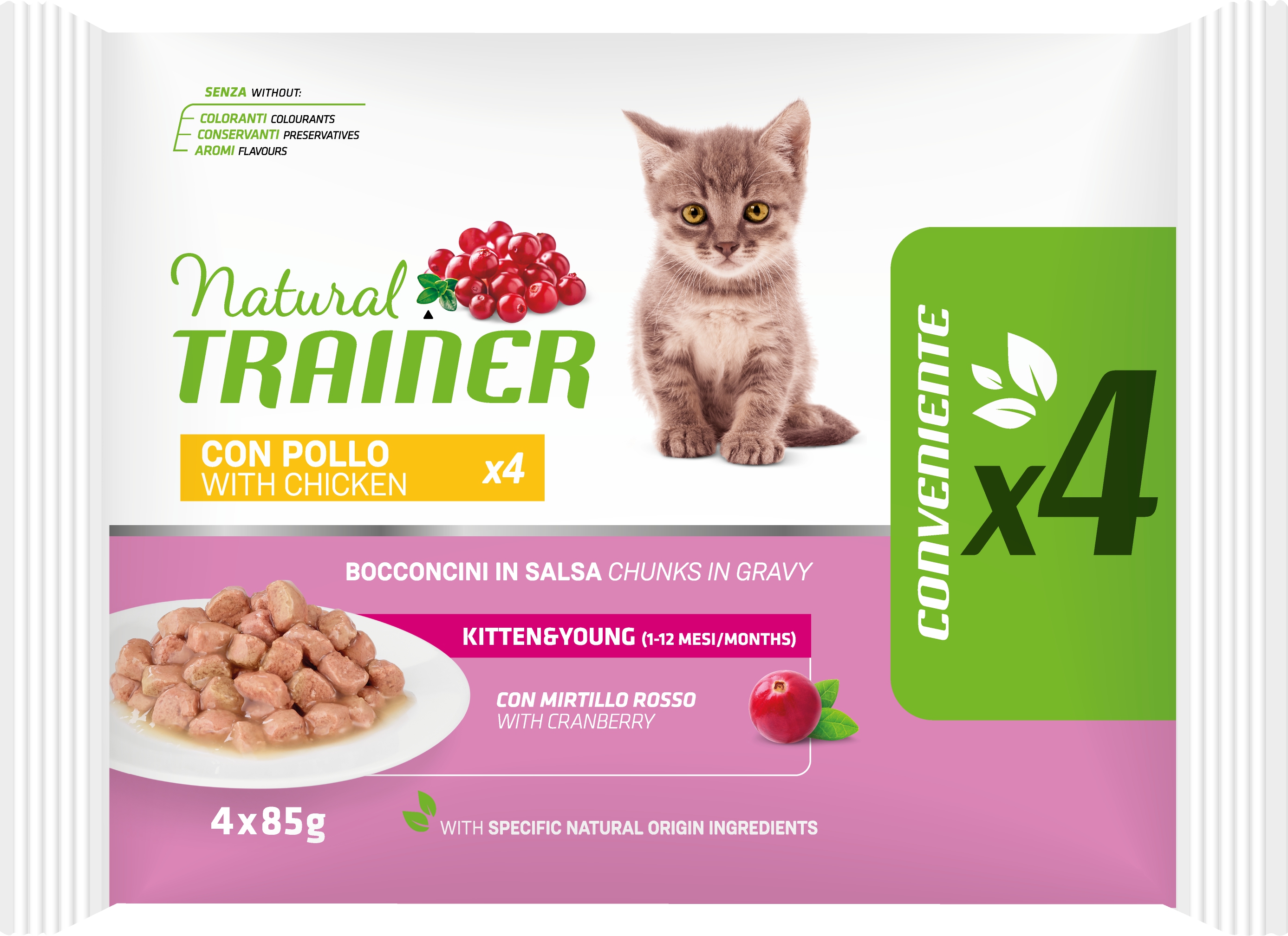 Alimento completo per gattini e gatti giovani da 1 a 12 mesi d'età.