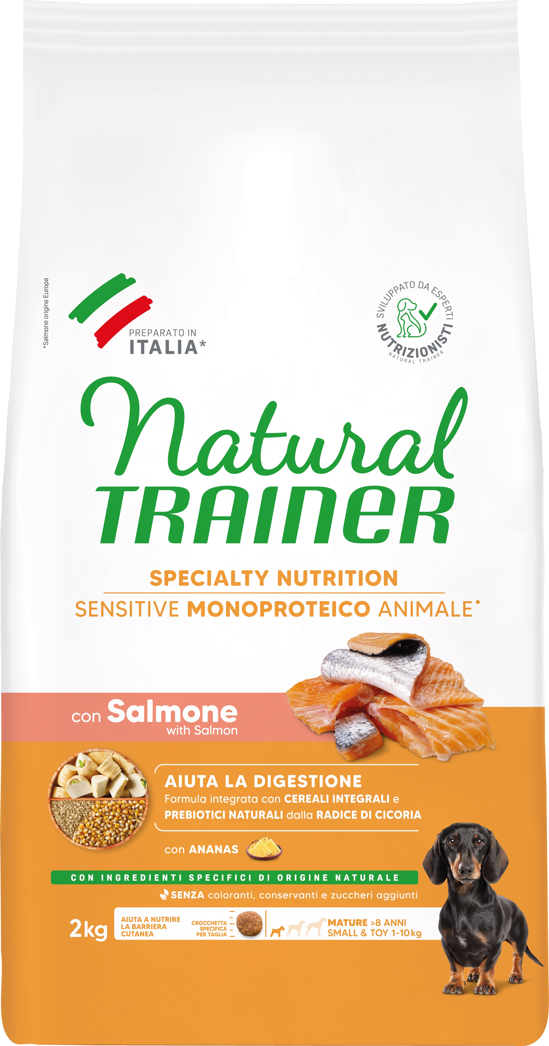 La formula adattata con cereali integrali, prebiotici ed estratto di ananas 100% naturale aiuta la funzionalità digestiva. È formulato con un'unica fonte di proteine animali (salmone) alternativa a quelle più comuni.