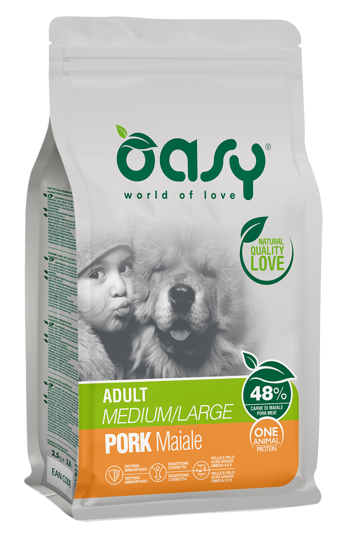 Composizione: Carne fresca di suino (30%), riso, carne di suino e derivati (20%), proteina di riso, grasso animale, proteina di patata, idrolizzato di fegato di suino, polpa di barbabietola (2,5%), semi di lino, lievito di birra (1%), olio di pesce, cloruro di sodio, cloruro di potassio, inulina (1.000 mg/kg, fonte di fruttoligosaccaridi), zenzero (0,1%), mannanoligosaccaridi (1.000 mg/kg ), estratto di yucca (170 mg/kg).