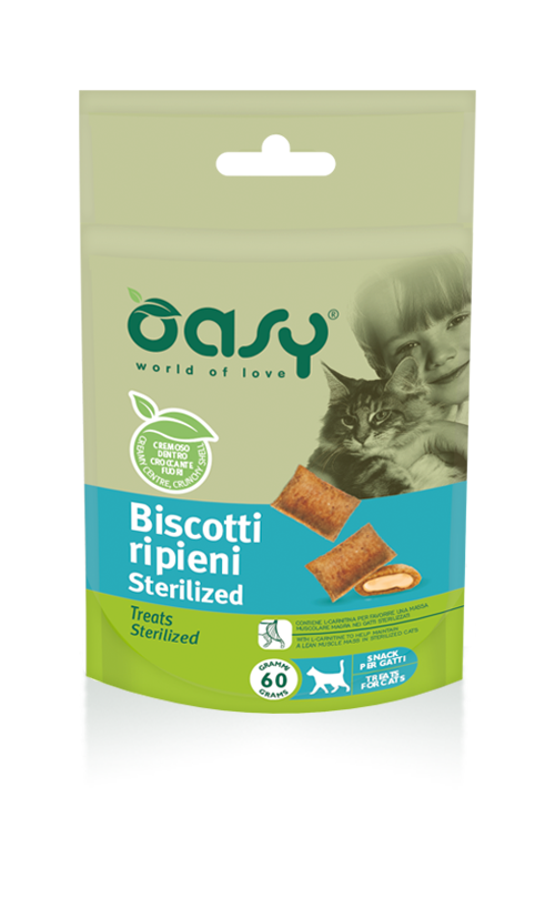 Recensioni per Oasy Snack Biscotti Ripieni per Gatti Sterilizzati 60 g