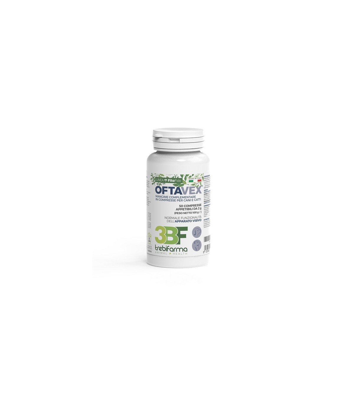 Trebifarma oftavex 50 compresse 2 grè un mangime complementare in compresse per cani e gatti indicato per favorire la normale funzionalita' dell' apparato visivo.