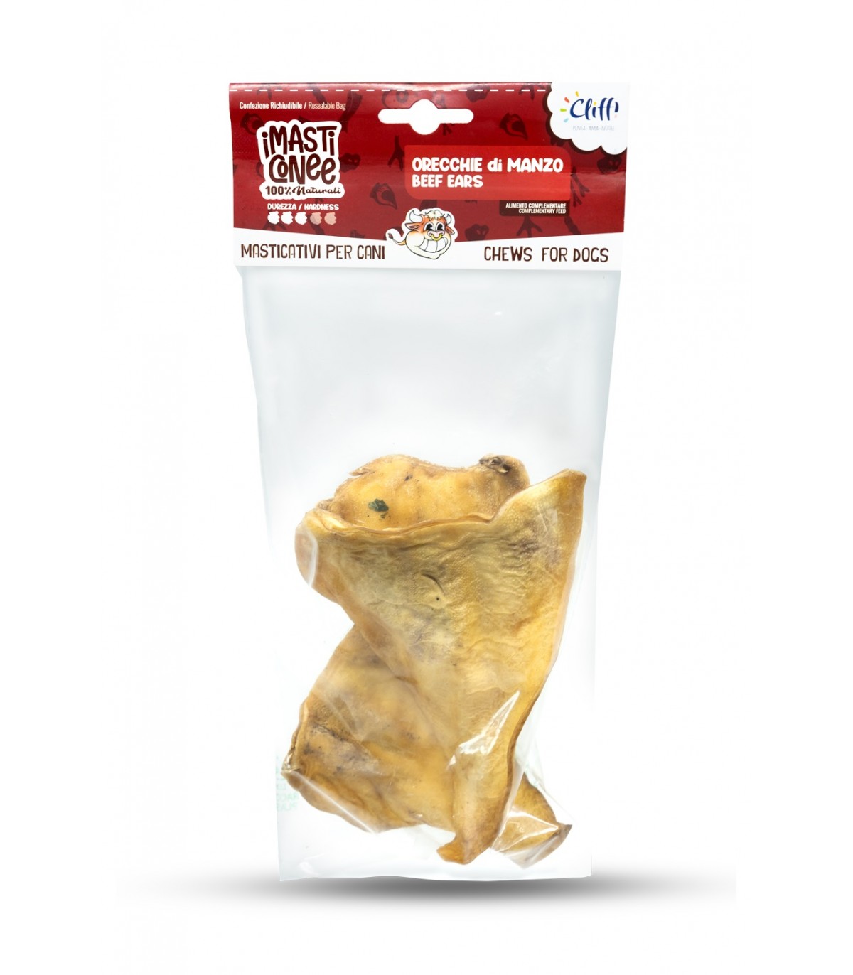 COMPOSIZIONE: Orecchie di manzo intero essiccato. 100% Manzo. Non contiene additivi.