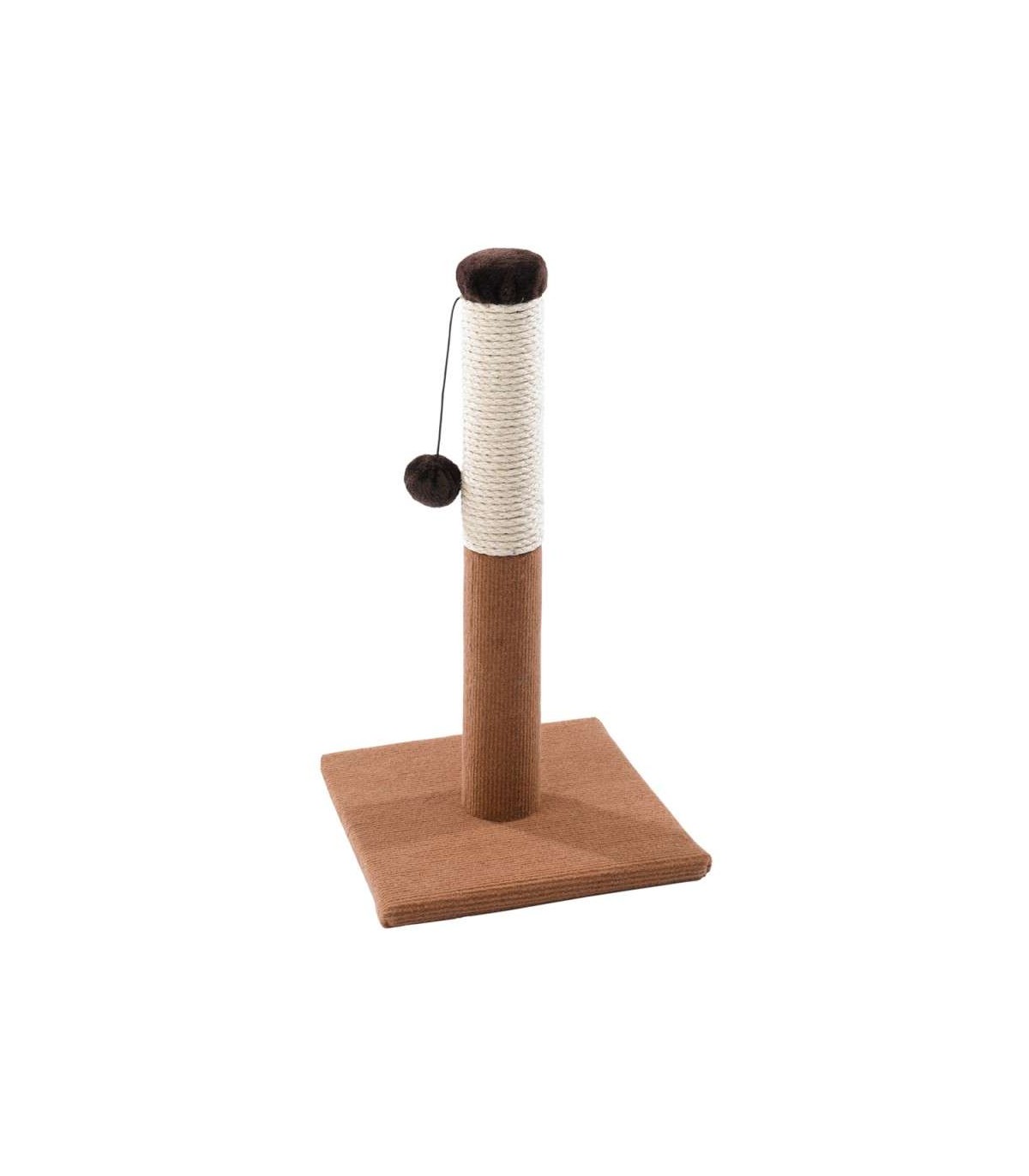 Tiragraffi per gatti utile per permettere all'animale di farsi le unghie. Realizzato in sisal con base ricoperta di moquette,è completo di pallina pendente in peluche.