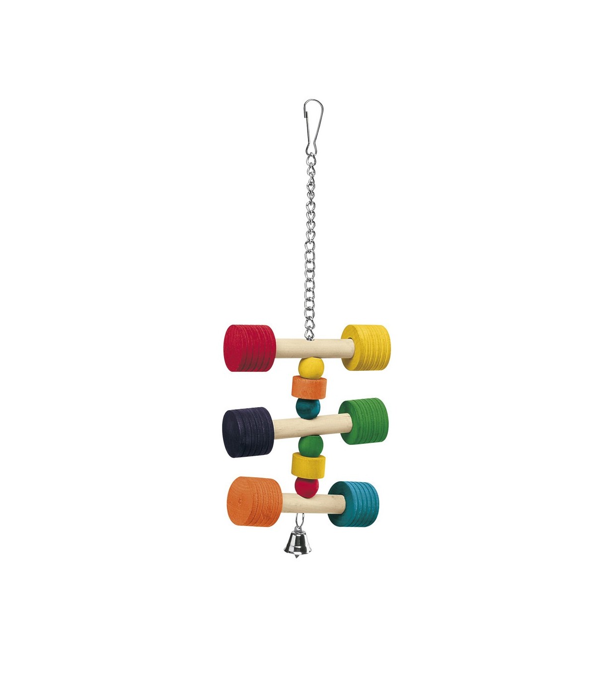 PA 4091è un gioco pendente in legno per pappagalli e cacatua, parte di una linea pensata per rendere più allegre e vivaci le giornate dei vostri amici piumati. Molto colorati e di varie forme, questi giochi sono tutti dotati di uno o più campanellini e di catena in metallo con gancio per poter essere comodamente fissati alla gabbia. Attenti al benessere generale delle vostre bestiole, le vernici utilizzate nella colorazione del legno sono completamente atossiche.