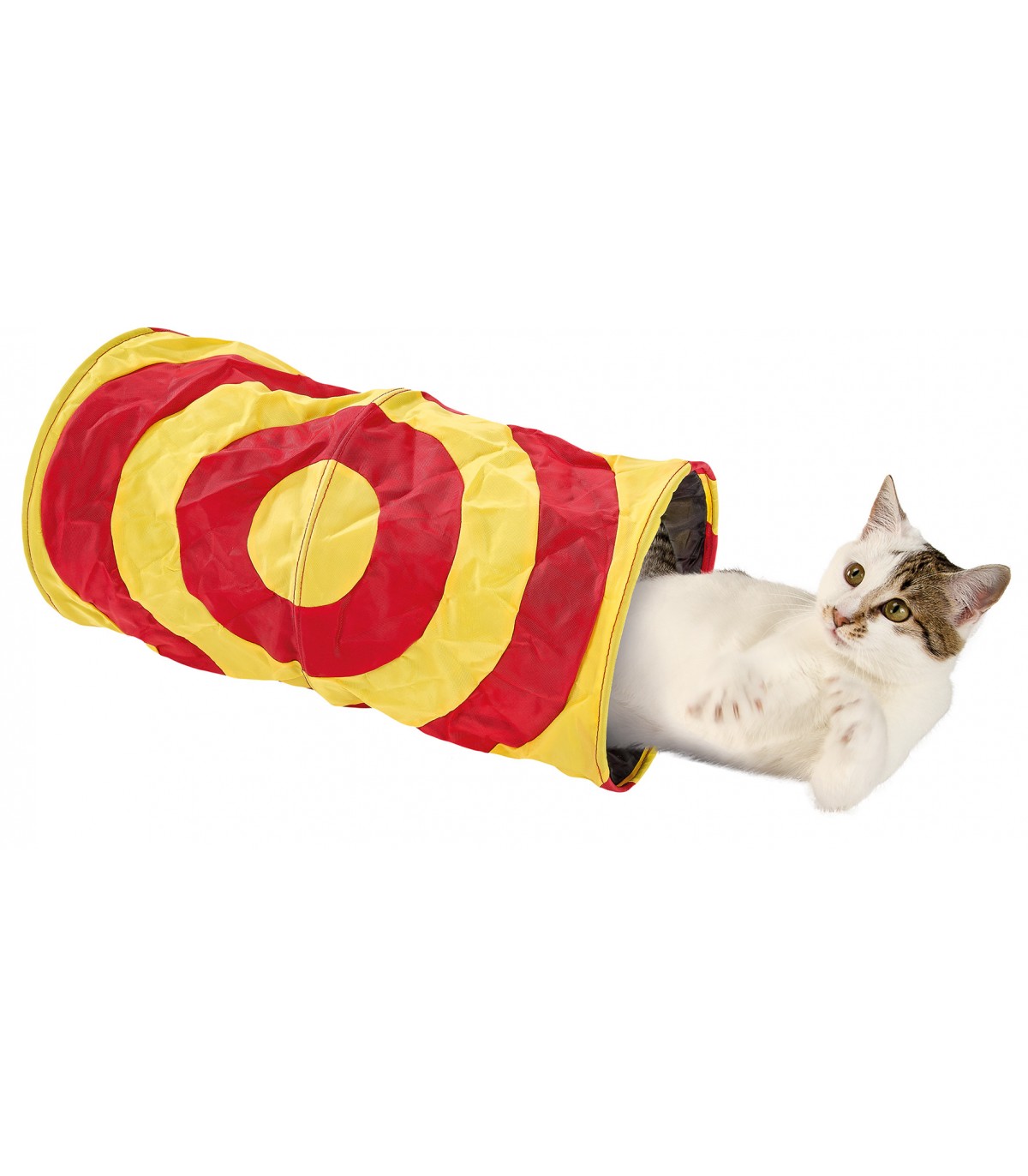Ecco un gioco di agilità per gatti a forma di tunnel dotato di due comode uscite, realizzato in poliestere con un telaio interno. Il tunnelè ideale per mantenere il vostro amico in ottima forma, utile anche come antistress per movimentare i momenti di noia. Il piccolo felino ne sarà incuriosito: lo potrà usare per tendere agguati e nascondersi all'interno, oppure semplicemente come rifugio per riposare tranquillo nei vari momenti della giornata. Una volta chiuso, poi, il tunnelè davvero compatto e perciò ideale per essere portato con voi in svariate occasioni.