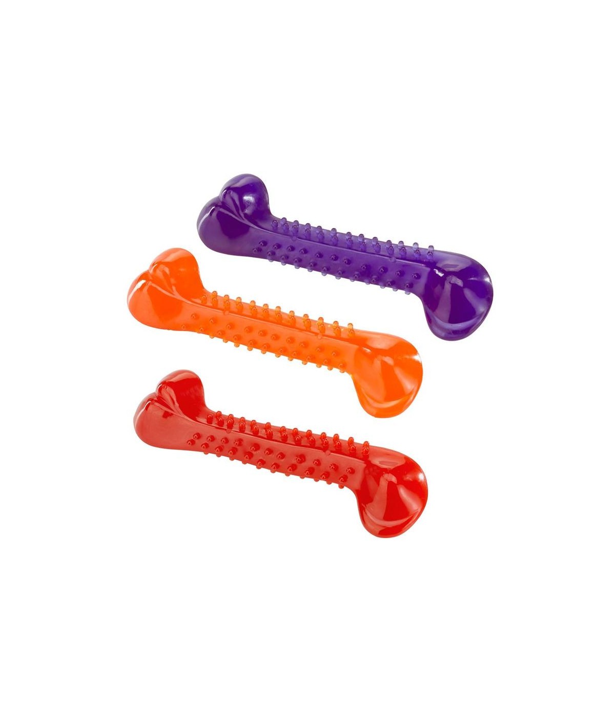 Un gioco per cani in poliuretano a forma di osso e realizzato con materiali di prima scelta, in modo da risultare perfettamente sicuro per gli animali. Disponibile in tre diverse dimensioni, PA 6482, PA 6484 e PA 6486, pensate per cani di tutte le taglie,è utile per soddisfare la loro naturale esigenza di mordere. Il materiale con cuiè prodotto, il poliuretano, lo rende inoltre particolarmente resistente; il tutto senza dimenticare l'estetica grazie al particolare effetto traslucido dato dalla trasparenza colorata. Un passatempo piacevole ma anche utile per il vostro amico peloso, visto che i dentini in rilievo di cuiè dotato provvedono alla pulizia dei denti.