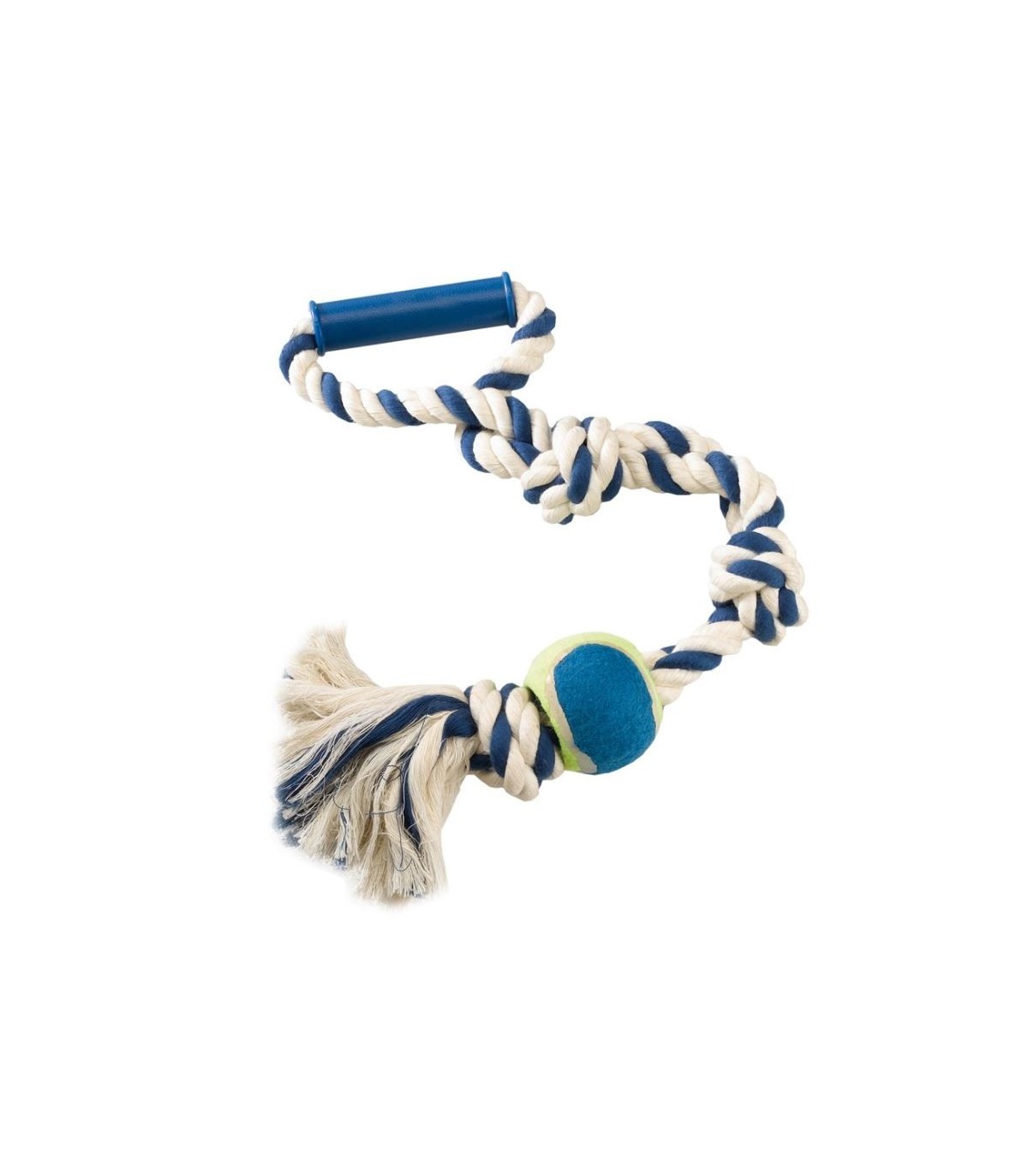 Ecco un gioco per cani realizzato in cotone completo di maniglia in plastica che potrete afferrare e il vostro amico si divertirà un mondo a mordere. Il gioco viene proposto in una piacevole variante colore con cordino bianco e blu. Ricordiamo che tutti i giochi per cani di Ferplast sono realizzati con la massima cura nella selezione dei materiali: il tutto per assicurare al vostro cane piacevoli momenti di svago in tutta tranquillità e sicurezza.