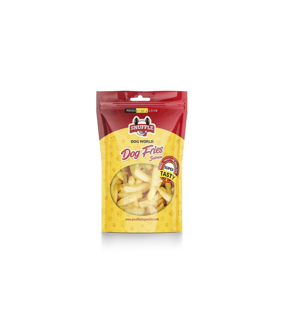 Ovviamente, un animale domestico dovrebbe evitare di mangiare patatine fritte per esseri umani. In quanto ricche di grassi saturi, potrebbe sviluppare problemi di salute. Ecco perché Snuffle ha pensato ad uno snack naturale con ingredienti di qualità, povero di grassi e che un cane può mangiare tranquillamente.