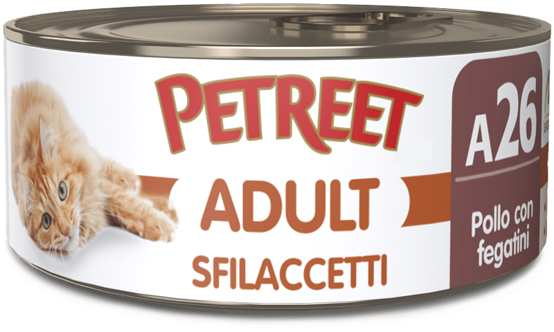 Petreet 70 gr Sfilaccetti di Pollo con Fegatini A26 Scatolette per Gatticonfezione da 6 pz. € 1.05 cad. prezzo unitario