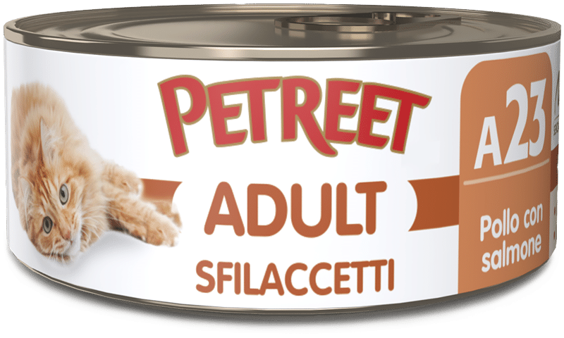 Petreet 70 gr Sfilaccetti di Pollo con Salmone A23 Scatolette Per Gatti