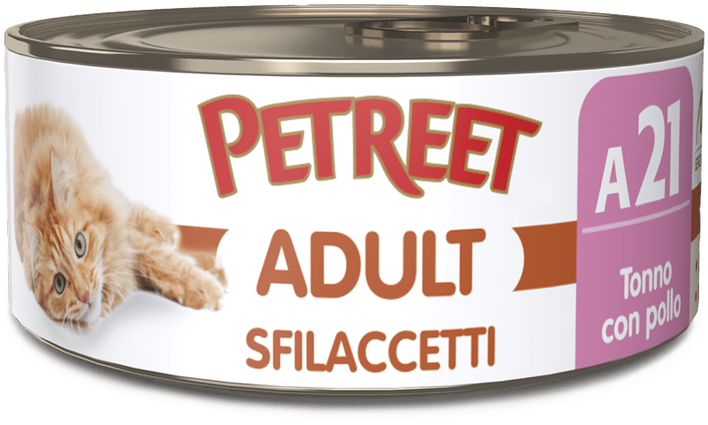 Petreet 70 gr Sfilaccetti di Pollo con Tonno Rosa A21 Scatolette Per Gatti