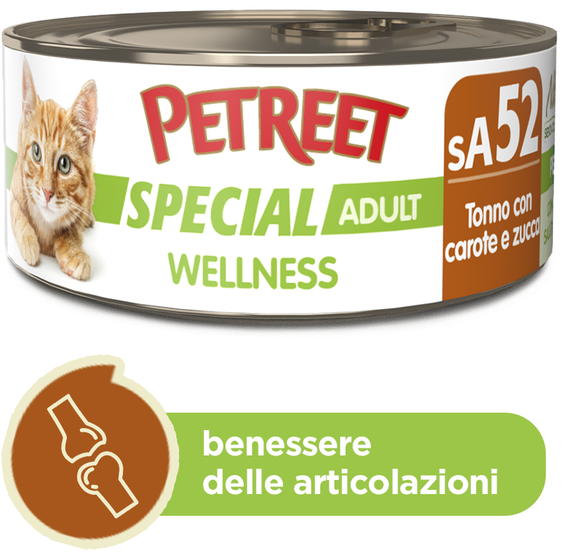 Tutte le varianti della linea Wellness rappresentano alimenti funzionali completi, realizzati con pregiato tonno di alta qualità e materie prime 100% naturali, senza coloranti né conservanti aggiunti. Grazie alla loro innovativa formula, ognuno di questi alimenti è stato studiato per apportare un benefit preciso e rilevante al tuo gatto.