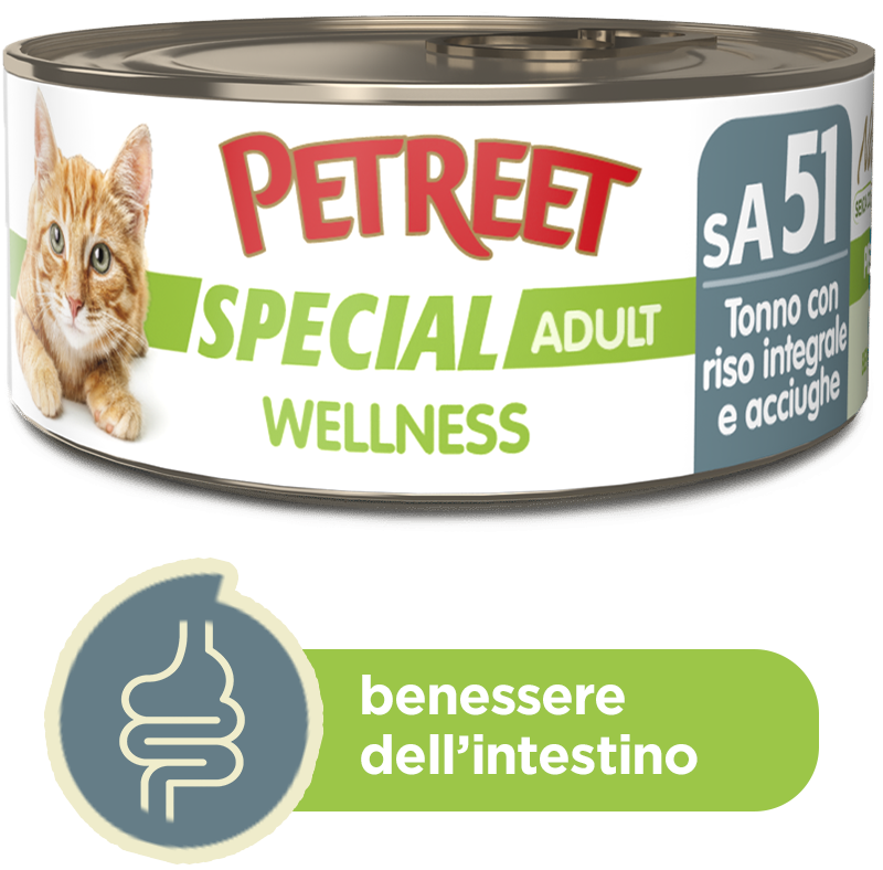 Tutte le varianti della linea Wellness rappresentano alimenti funzionali completi, realizzati con pregiato tonno di alta qualità e materie prime 100% naturali, senza coloranti né conservanti aggiunti. Grazie alla loro innovativa formula, ognuno di questi alimenti è stato studiato per apportare un benefit preciso e rilevante al tuo gatto.
