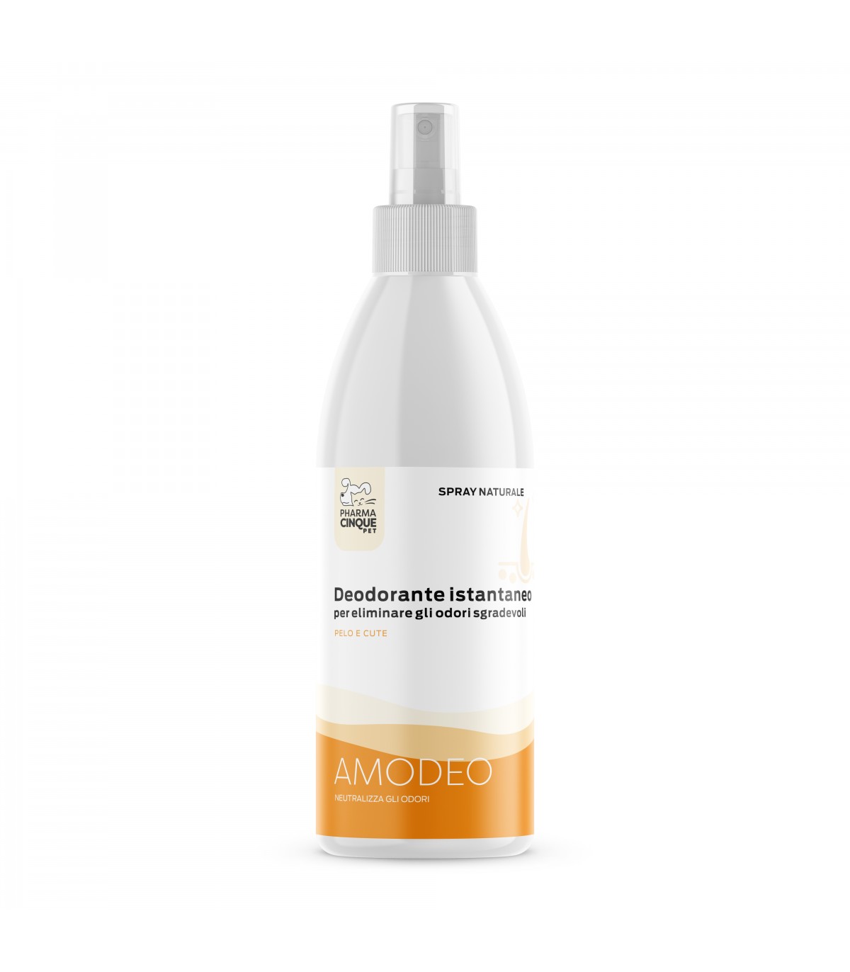 AmoDeo è Gradevole e delicato deodorante per animali domestici, in grado di neutralizzare i cattivi odori, anche quelli di pelo bagnato, proteggendo al contempo cute e manto. Ideale dopo la toelettatura o nella beauty care quotidiana dell'animale.