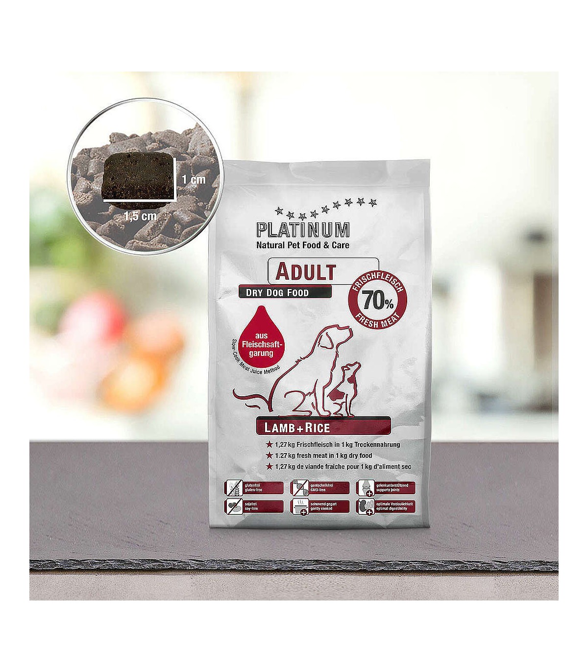 Fleischsaftgarung rende il cibo per cani equivalente al cibo umano di alta qualità. Pertanto non chiamiamo "cibo per cani" il cibo cucinato con Fleischsaftgarung.
