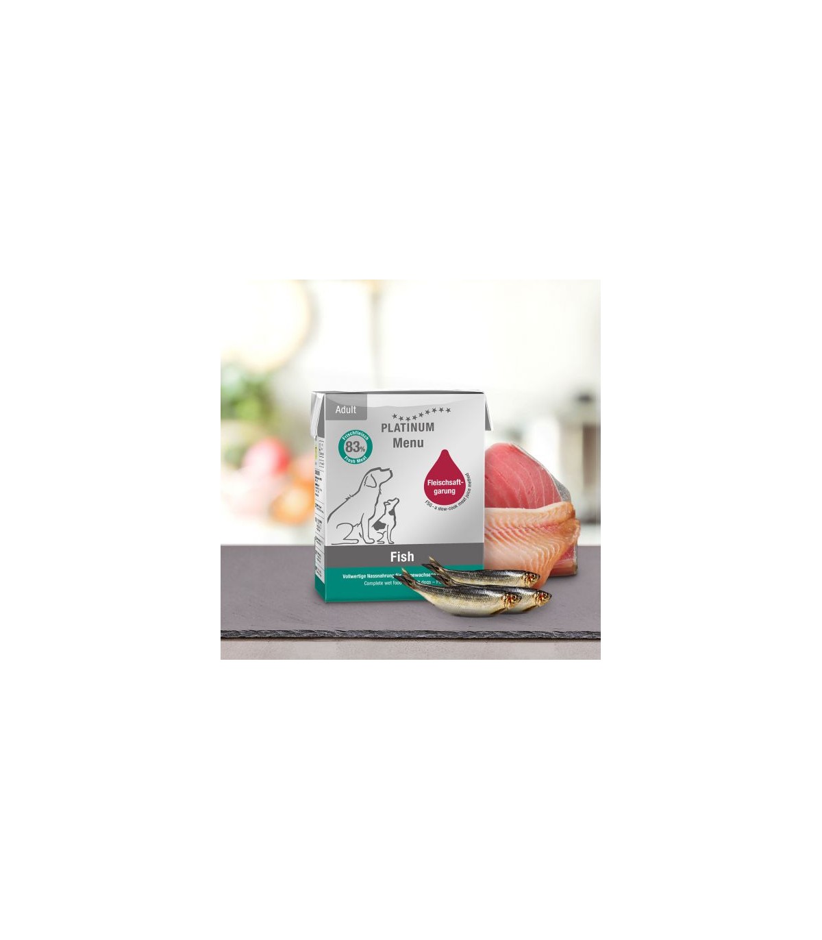 Usiamo Fleischsaftgarung per preparare il nostro menu di cibo umido Menu Pure Fish. Fleischsaftgarung è un metodo di preparazione della carne fresca. È stato sviluppato in cucina e non nell'industria dei mangimi. Il metodo si basa su tecniche spesso utilizzate dagli chef per rendere la carne più gustosa e sana utilizzando i succhi di carne. Fleischsaftgarung è una combinazione accuratamente selezionata di queste tecniche di cottura, adattata alle esigenze fisiche e agli interessi dei cani.