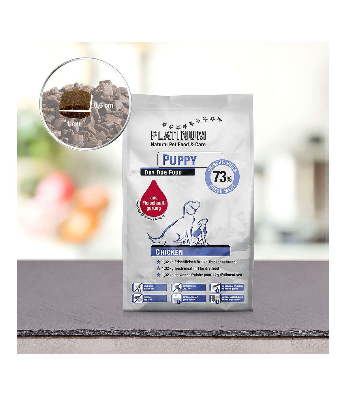 Fleischsaftgarung rende il cibo per cani equivalente al cibo umano di alta qualità. Pertanto non chiamiamo "cibo per cani" il cibo cucinato con Fleischsaftgarung.