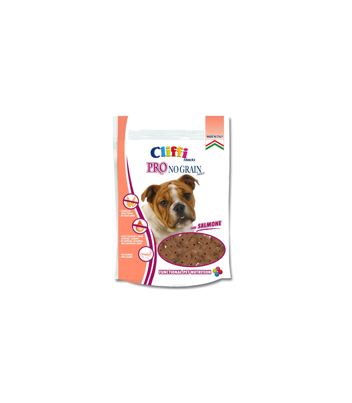 I cani sono carnivori, pertantoè opportuno ridurre al massimo l'apporto di cereali nella loro alimentazione. CLIFFI "PRO-NO GRAIN ADDED" con SALMONEè uno snack (alimento complementare) gustoso e morbido, formulato senza cereali aggiunti. Contiene Inulina (fonte di Fruttoligosaccaridi), prebiotico utile per favorire il benessere intestinale.