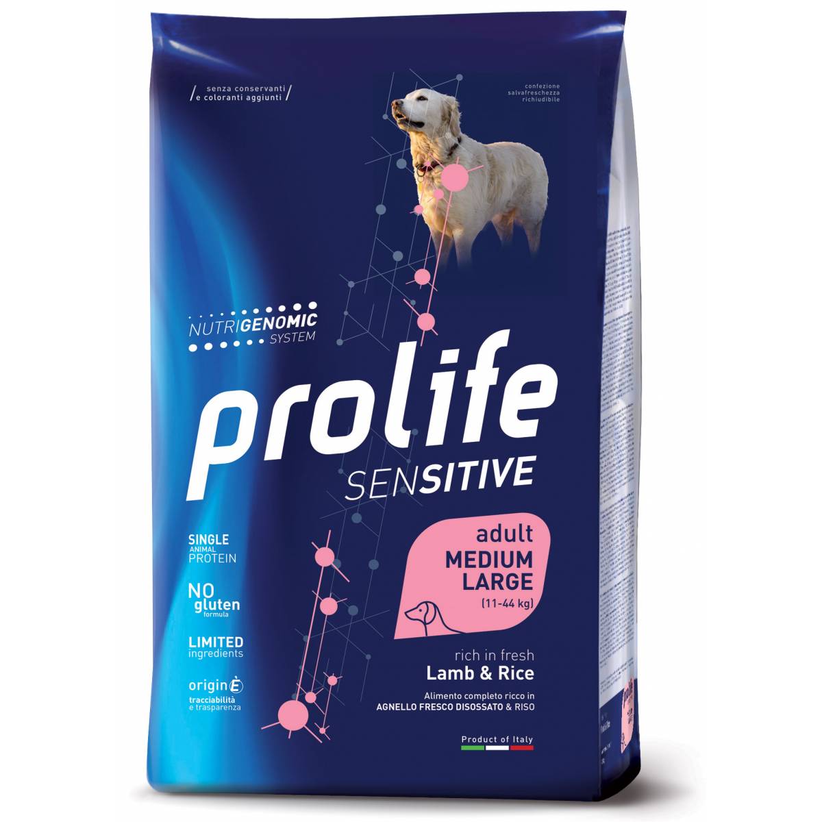 Prolife Sensitive Lamb & Rice è un alimento completo formulato per le specifiche esigenze nutrizionali del cane adulto che presenta sensibilità digestive, articolari o cutanee.