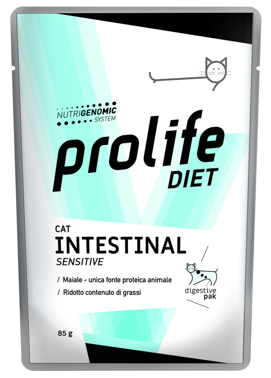 Alimento completo dietetico per il gatto formulato per la compensazione della cattiva digestione, la riduzione dei disturbi dell’assorbimento intestinale e il supporto al metabolismo dei lipidi in caso di iperlipidemia.