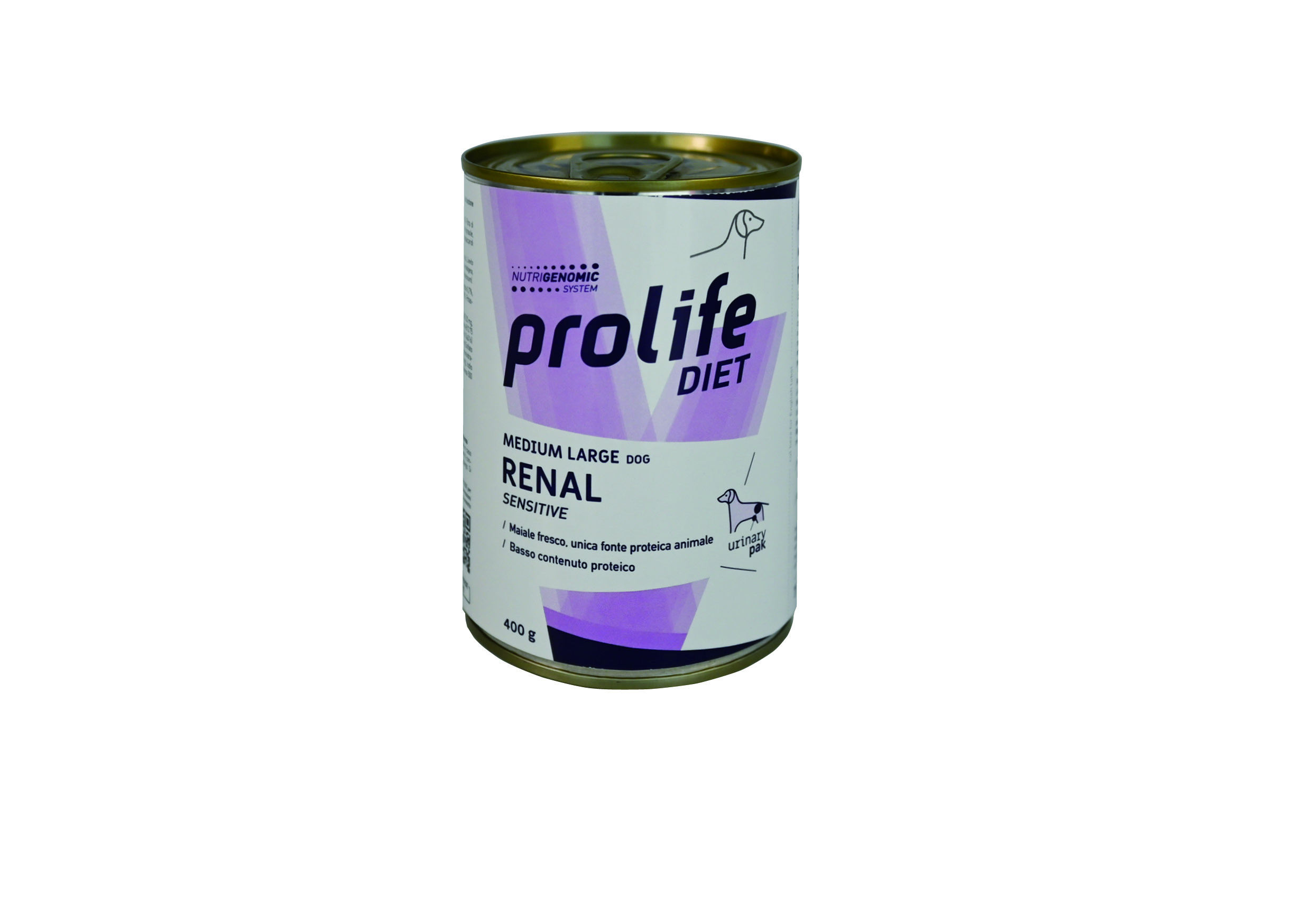 Prolife Renal Sensitive wet è l'alimento completo dietetico specifico per il cane sensibile con sintomatologia causata da insufficienza renale cronica. Il basso livello di fosforo aiuta a rallentare la progressione dell'insufficienza renale mentre il maiale fresco, unica fonte proteica animale leggera e digeribile, è ideale in caso di sensibilitè.
