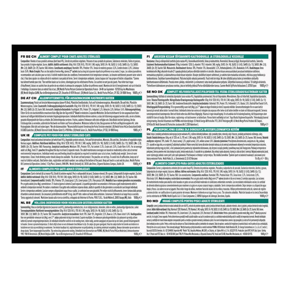 ISTRUZIONI D'USO: Per un gatto adulto (circa 4 kg), somministrare 2½ buste al giorno in almeno 2 pasti separati. Le quantità giornaliere raccomandate si pubblicano a gatti moderatamente attivi in ambienti a temperatura normale. Per aiutare a mantenere il tuo gatto nella condizione corporea ideale, adattare la quantità di cibo giornaliero a seconda dei suoi bisogni individuali. Servire a temperatura ambiente. Lasciare sempre a disposizione acqua fresca e pulita. Per un gatto adulto (circa 4 kg), somministrare 2½ buste al giorno in almeno 2 pasti separati. Per aiutare a mantenere il tuo gatto nella condizione corporea ideale, adatta la quantità di cibo giornaliero a seconda dei suoi bisogni individuali. Servire a temperatura ambiente. Lasciare sempre a disposizione acqua fresca e pulita.