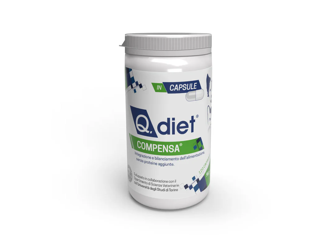 INDICAZIONI: Compensa® è l'integratore vitaminico-minerale ideale a completamento delle diete casalinghe o delle diete ad eliminazione. Apporta acidi grassi essenziali e minerali. Grazie al suo apporto di taurina è adatto anche ai gatti. Non contiene proteine di origine animale.