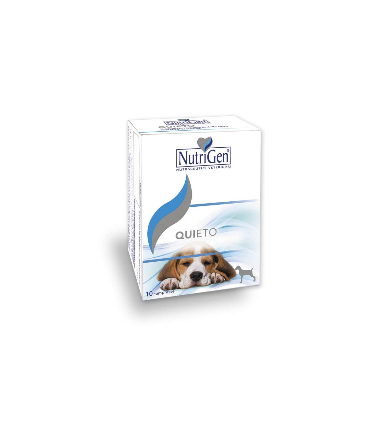 Quietoè utilizzato nei casi di paura (temporali, fuochi d'artificio, ecc..), ansia (separazione anche breve, cambio di proprietario e di abitazione, distacco dalla madre), prima delle visite dal veterinario, prima del lavaggio e della toelettatura, prima di un viaggio per ridurre il mal d'auto, durante la permanenza in canili o in ambienti angusti quali i kennel. Quietoè di supporto alle terapie comportamentali e contribuisce a ridurre fenomeni di aggressività. Agisce principalmente sulla naturale produzione di Seretonina e sulla sua sintesi. La Seretonina ha un effetto rilassante e calmante non sedativo e contribuisce ad un generale stato di benessere. La L-Teaninaè nota per le sue capacità di ridurre lo stress mentale. Le vitamine del gruppo B contenute contribuiscono a migliorare i disturbi nervosi.